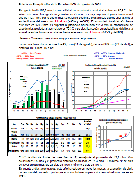 Boletín Lluvias Estación UCV – Agosto 2021 Revisar Boletín Lluvias Estación UCV - Agosto 2021 Lluvia UCV al 31-08-21
