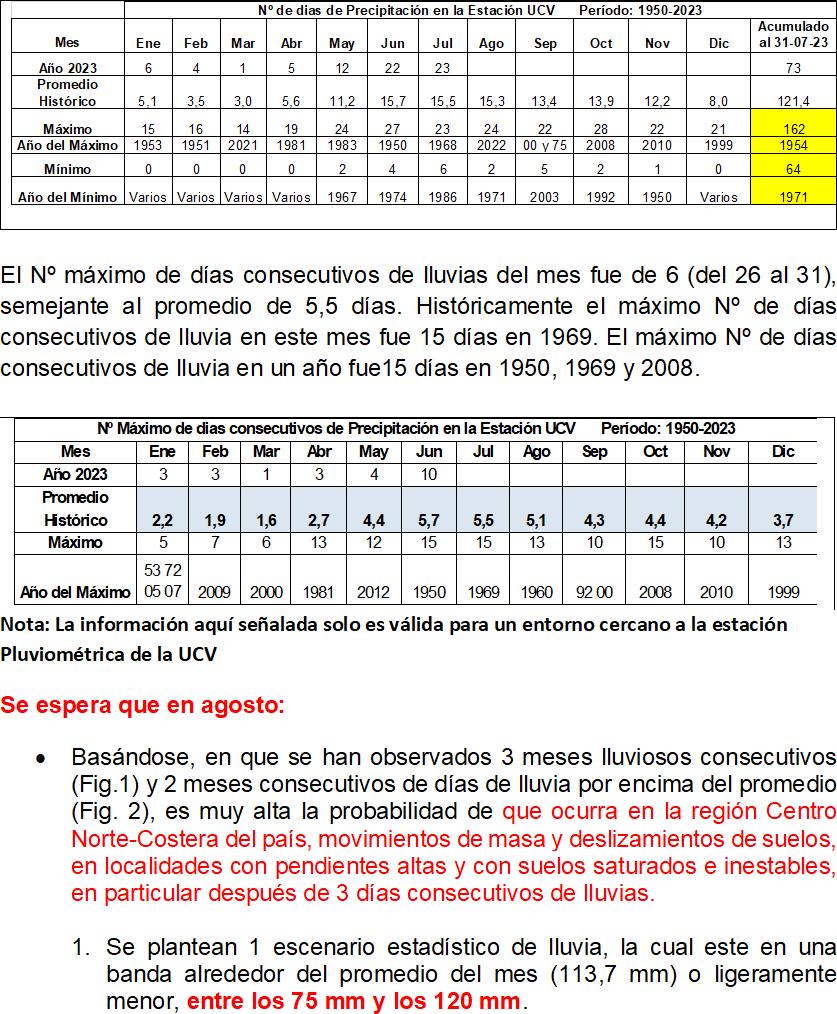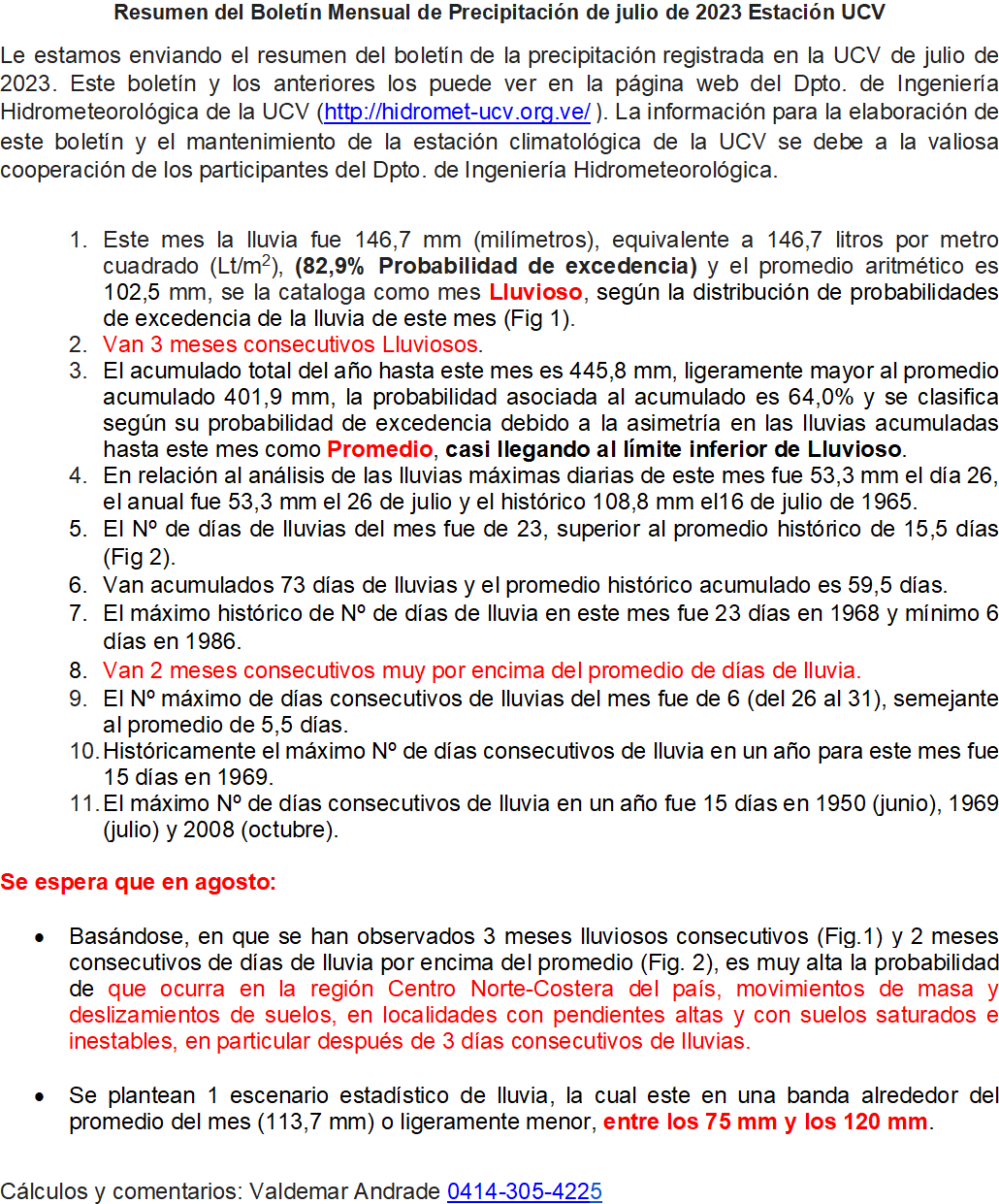 Boletín Lluvias Estación U.C.V. Julio 2023