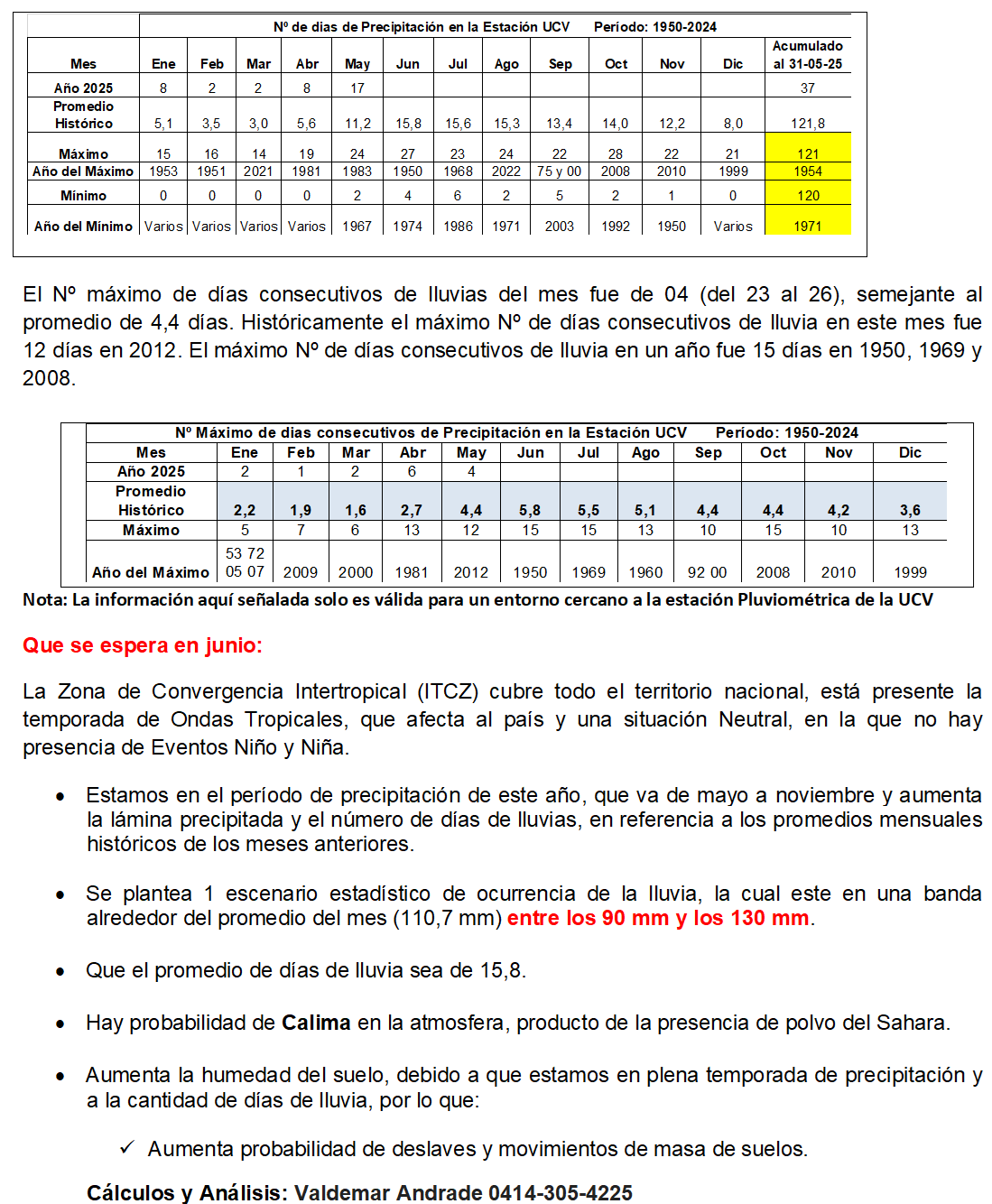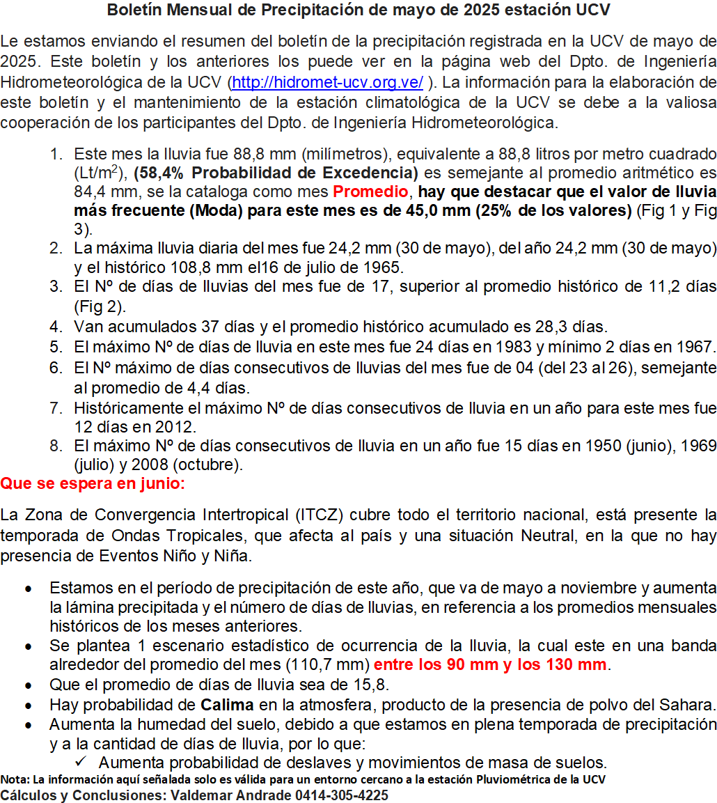 Boletín Lluvias Estación U.C.V. – Mayo 2025