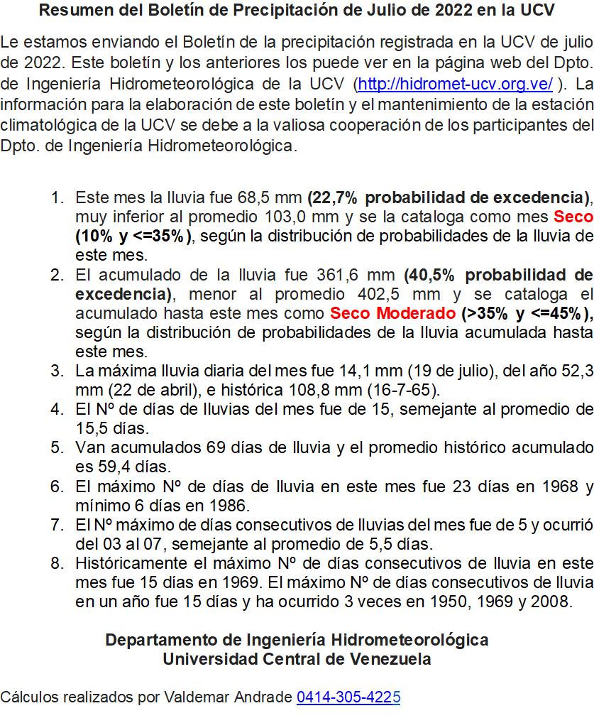 Para información adicional ver: Lluvias Estación Universidad Central de Venezuela