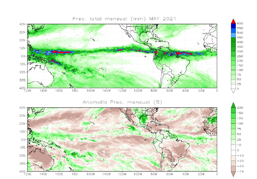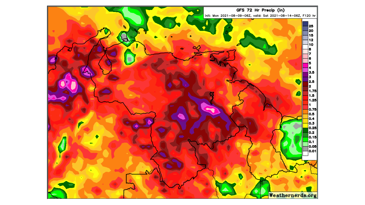 Pronostico de Anomalías Semanales para Venezuela, del 09/08 al 05/09 de 2021, usando datos del Modelo CFSv2 de NOAA y ECMWF. Nota: anomalías positivas, precipitaciones sobre la media y negativas por debajo de la media histórica (1999-2010). Anomalías negativas no…