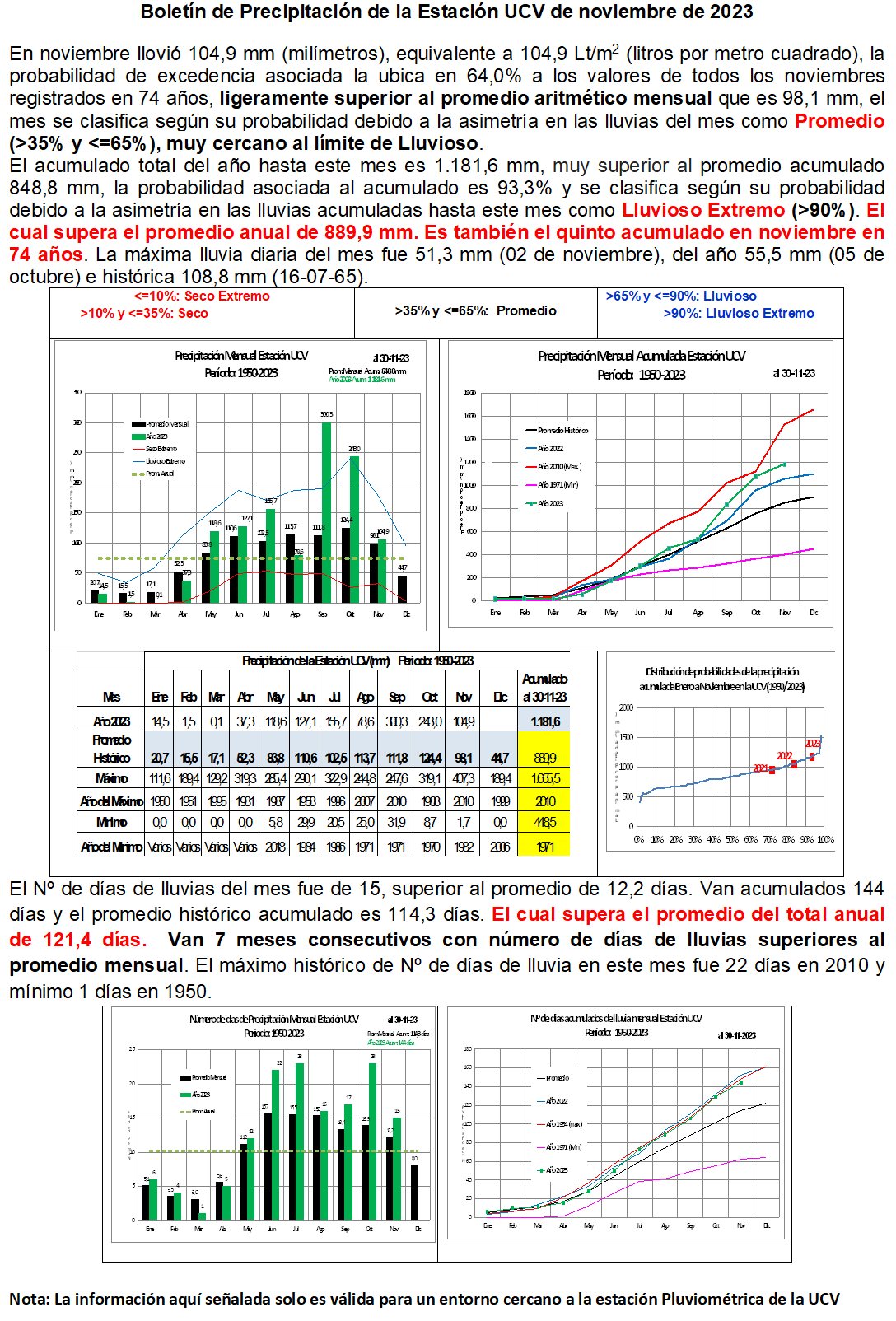 Para otras informaciones consultar la página web del Departamento de Ingeniería Hidrometeorológica Universidad Central de Venezuela (UCV) (https://hidromet-ucv.org/ ) Lluvia UCV al 30-11-23 Anexo Noviembre 2023