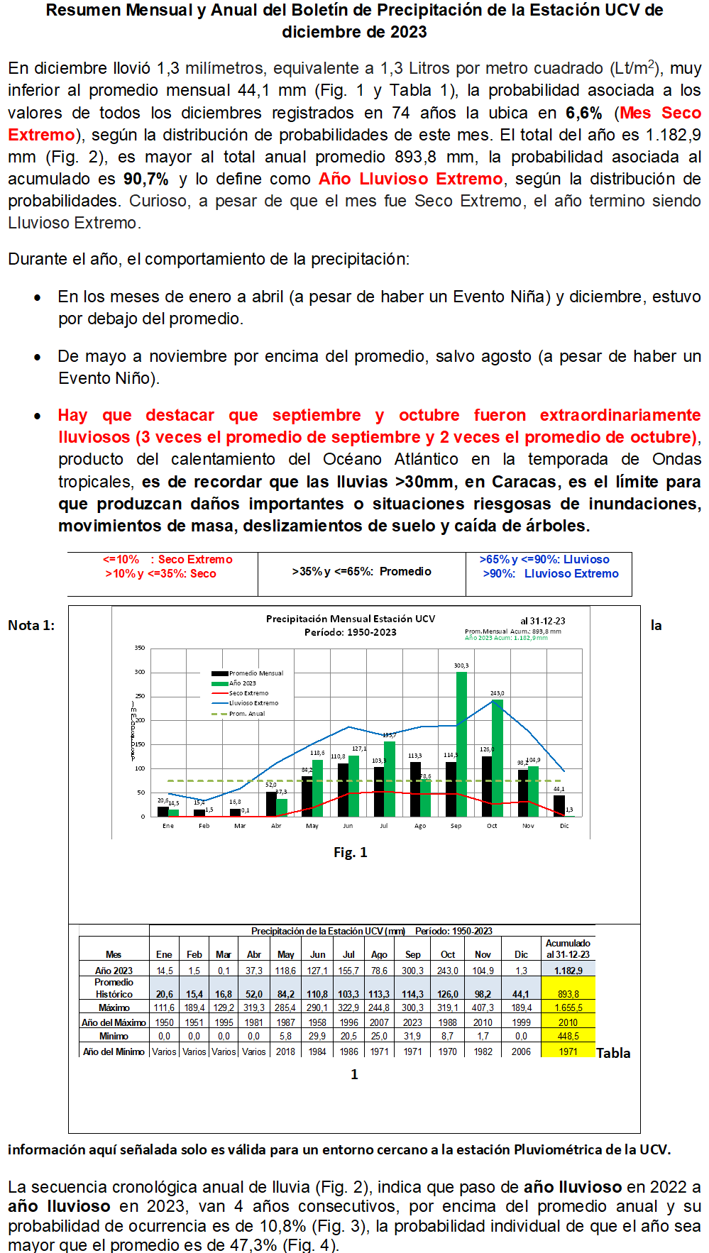 Para datos abrir Página del Departamento de Ingeniería Hidrometeorológica Universidad Central de Venezuela: (https://hidromet-ucv.org/) Lluvia UCV al 31-12-23 Anexo Resumen Anual 2023