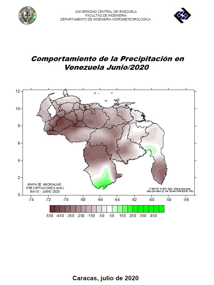 Comportamiento de la Precipitación en Venezuela Junio2020