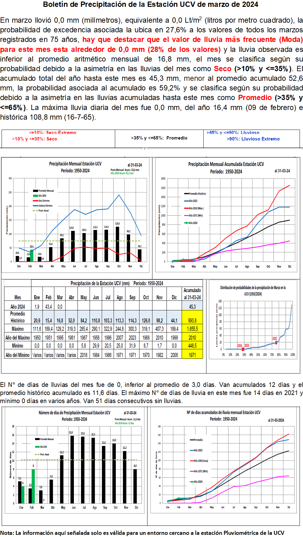 Para datos abrir Página del Departamento de Ingeniería Hidrometeorológica Universidad Central de Venezuela: (https://hidromet-ucv.org/) Lluvia UCV al 31-03-24 Anexo Marzo 2024