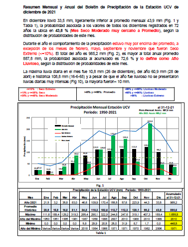 Consultar Boletín Lluvias Estación UCV Lluvia UCV al 31-12-21 Anexo diciembre 2021