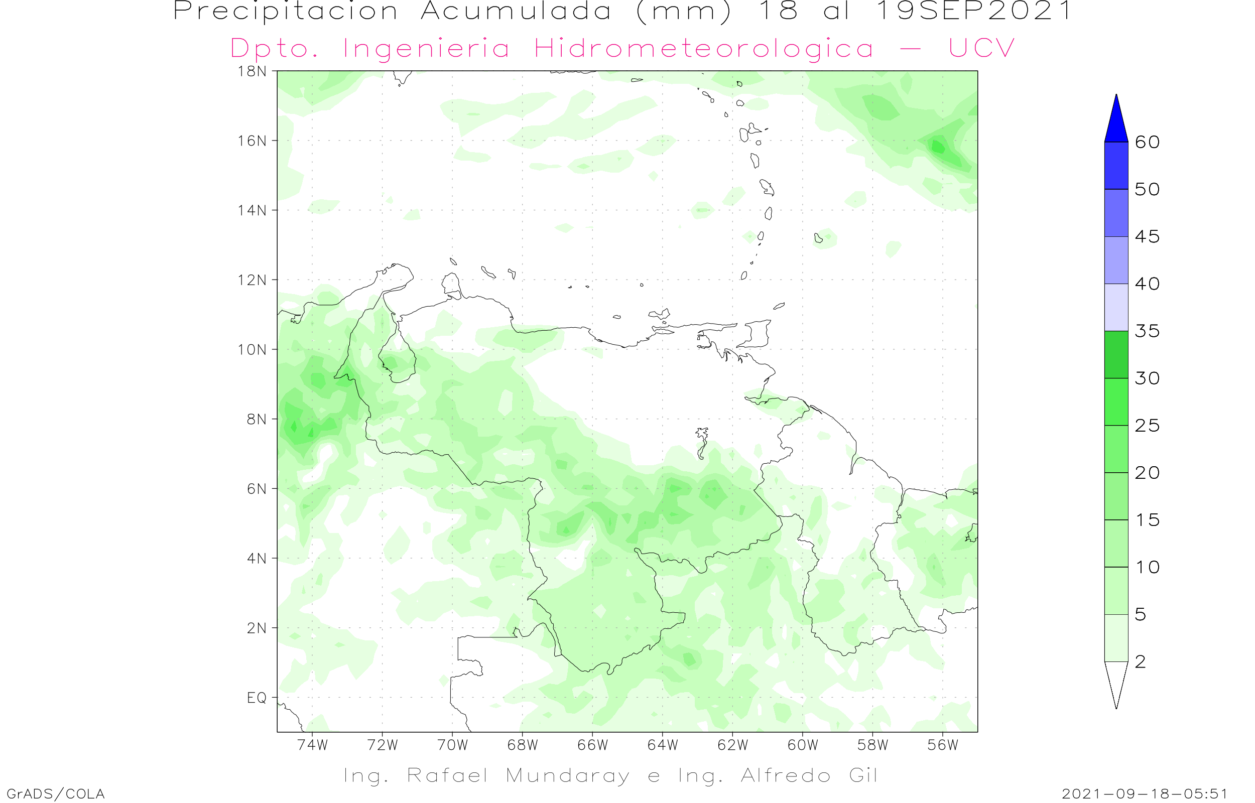 Pronostico de Anomalías Semanales para Venezuela, del 20/09 al 17/10 de 2021, usando datos del Modelo CFSv2 de NOAA y ECMWF. Nota: anomalías positivas, precipitaciones sobre la media y negativas por debajo de la media histórica (1999-2010). Anomalías negativas…