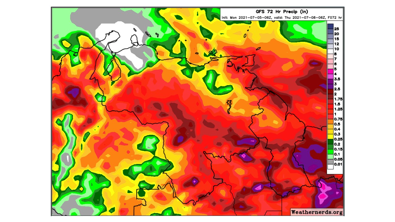 Pronostico de Anomalías Semanales para Venezuela, del 26/07 al 22/08 de 2021, usando datos del Modelo CFSv2 de NOAA y ECMWF. Nota: anomalías positivas, precipitaciones sobre la media y negativas por debajo de la media histórica (1999-2010). Anomalías negativas no…