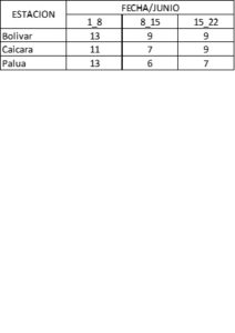 En las tablas se muestra el crecimiento de los niveles en el río Orinoco en sus diferentes estaciones, para periodos semanales para junio, la semana del 1 al 8, se aprecia el mayor crecimiento de niveles, ubicándose un crecimiento diario entre 11 y 13 cm, las siguientes semanas se mantuvieron estable