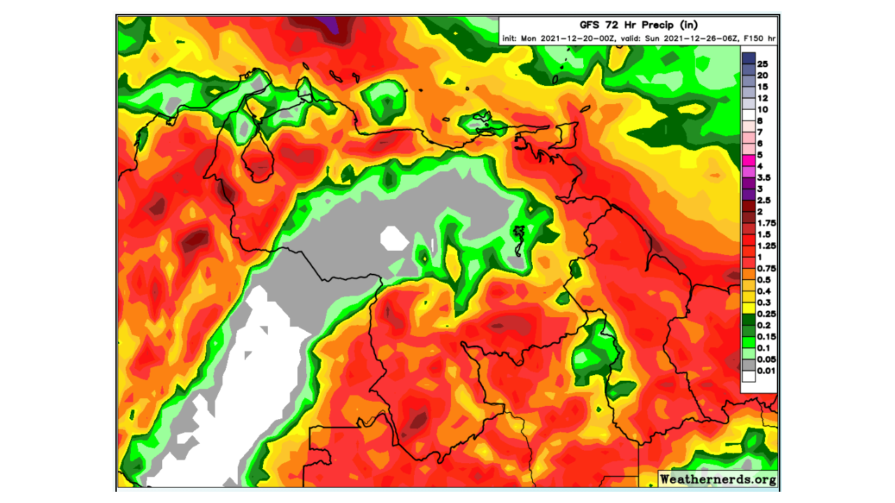 PRONOSTICO DE ANOMALÍAS SEMANALES DE PRECIPITACIÓN DEL 20/12/21 AL 16/01/22 Pronostico de Anomalías Semanales para Venezuela, del 20/12/21 al 16/01/22, usando datos del Modelo CFSv2…