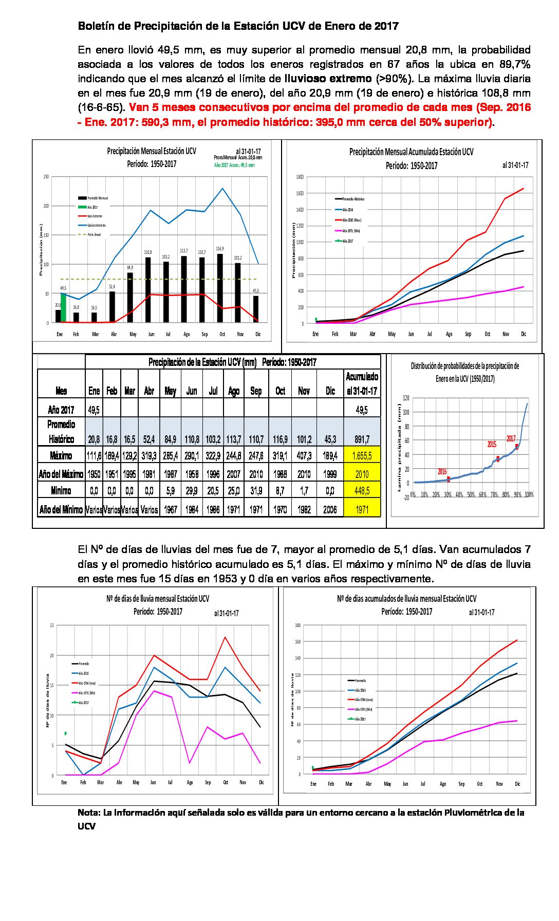 Boletín Lluvia UCV al 31-01-17 Boletín de Precipitación de la Estación UCV de Enero del 2017 En enero llovió 49,5…