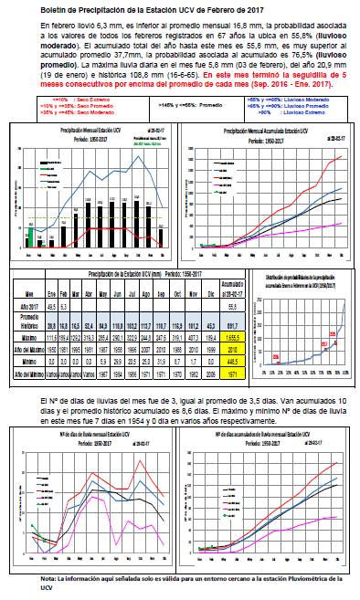 Boletín Estación UCV Febrero 2017 Boletín de Precipitación de la Estación UCV de Febrero de 2017 En febrero llovió…