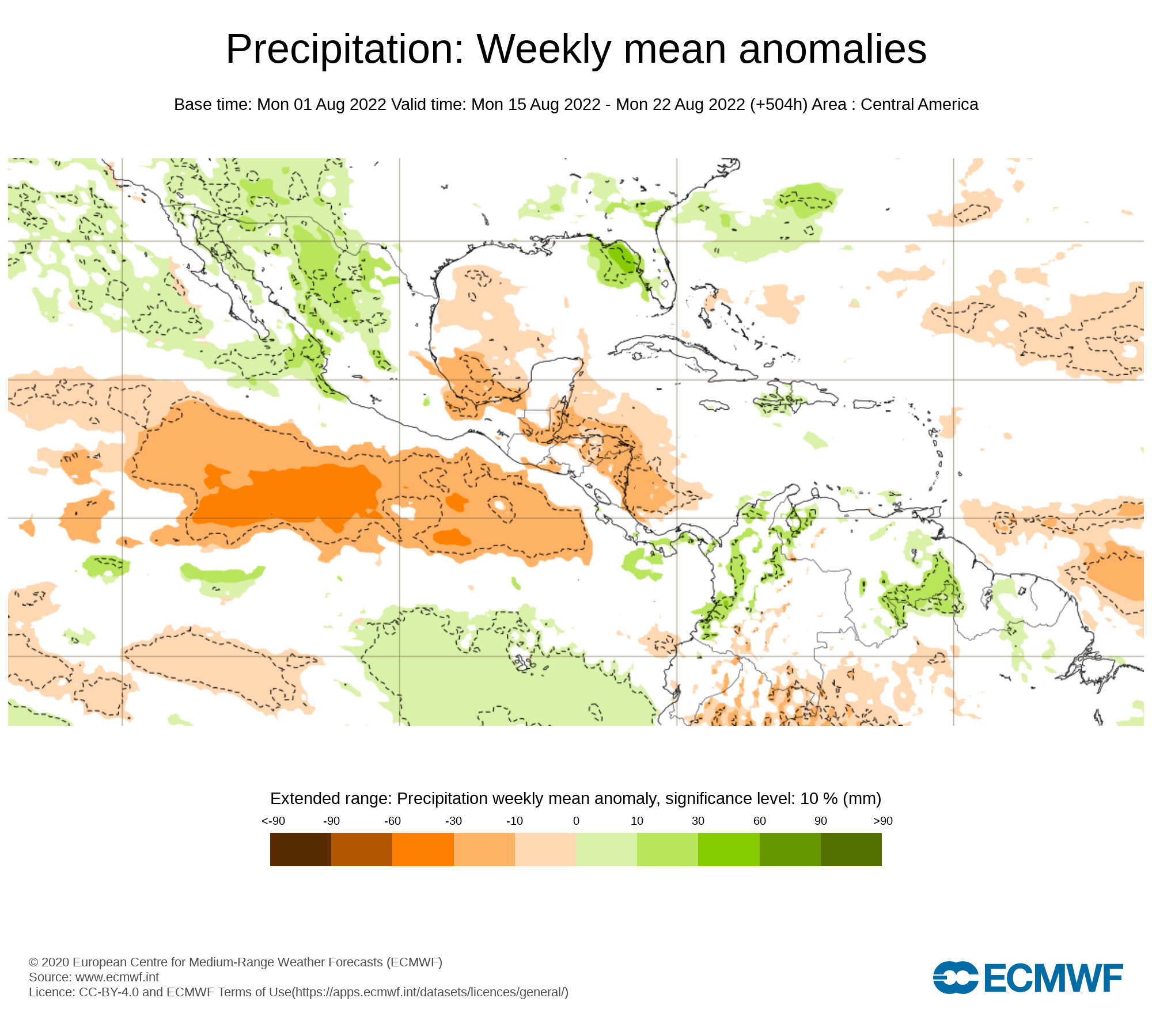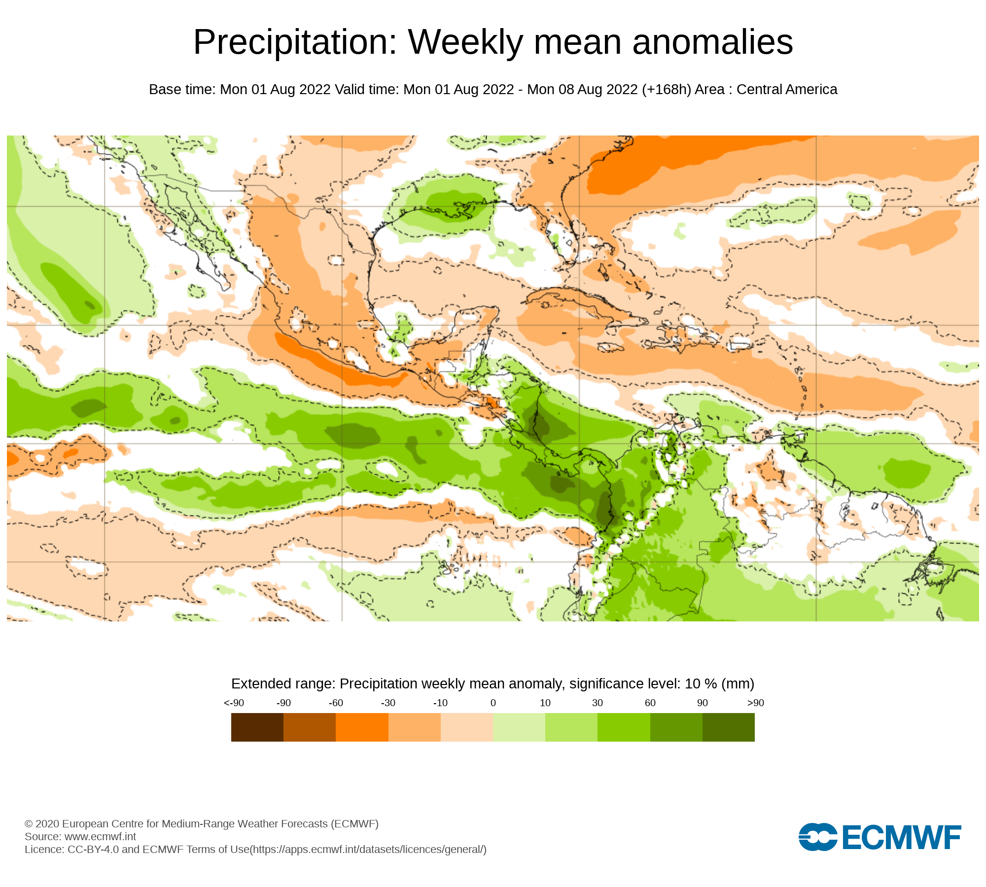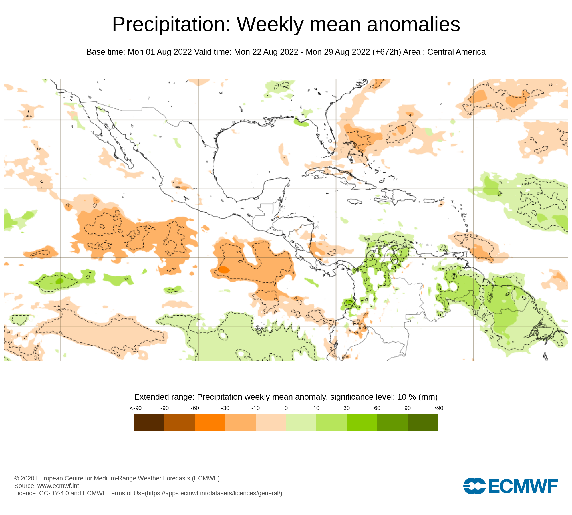 PRONOSTICO DE ANOMALÍAS SEMANALES DE PRECIPITACIÓN DEL 01 AL 28/08/22
