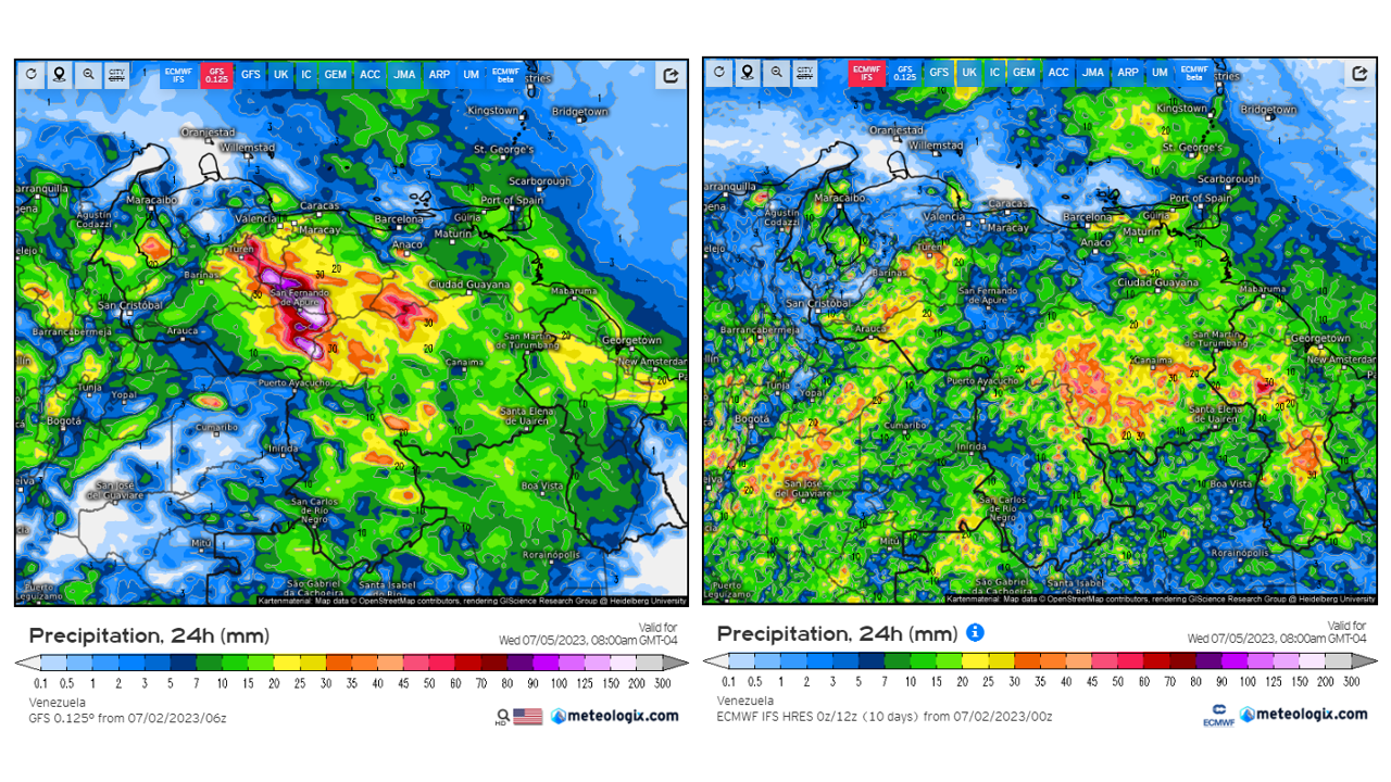 Durante la semana deben pasar al menos dos ondas tropicales las cuales deben generar eventos de precipitaciones en su trayectoria sobre Venezuela, los eventos más importantes deben ocurrir a media semana, y reactivarse nuevamente para el fin. Sobre los llanos occidentales, oeste de Guárico y Bolívar se esperan los eventos más importantes de precipitaciones de precipitaciones