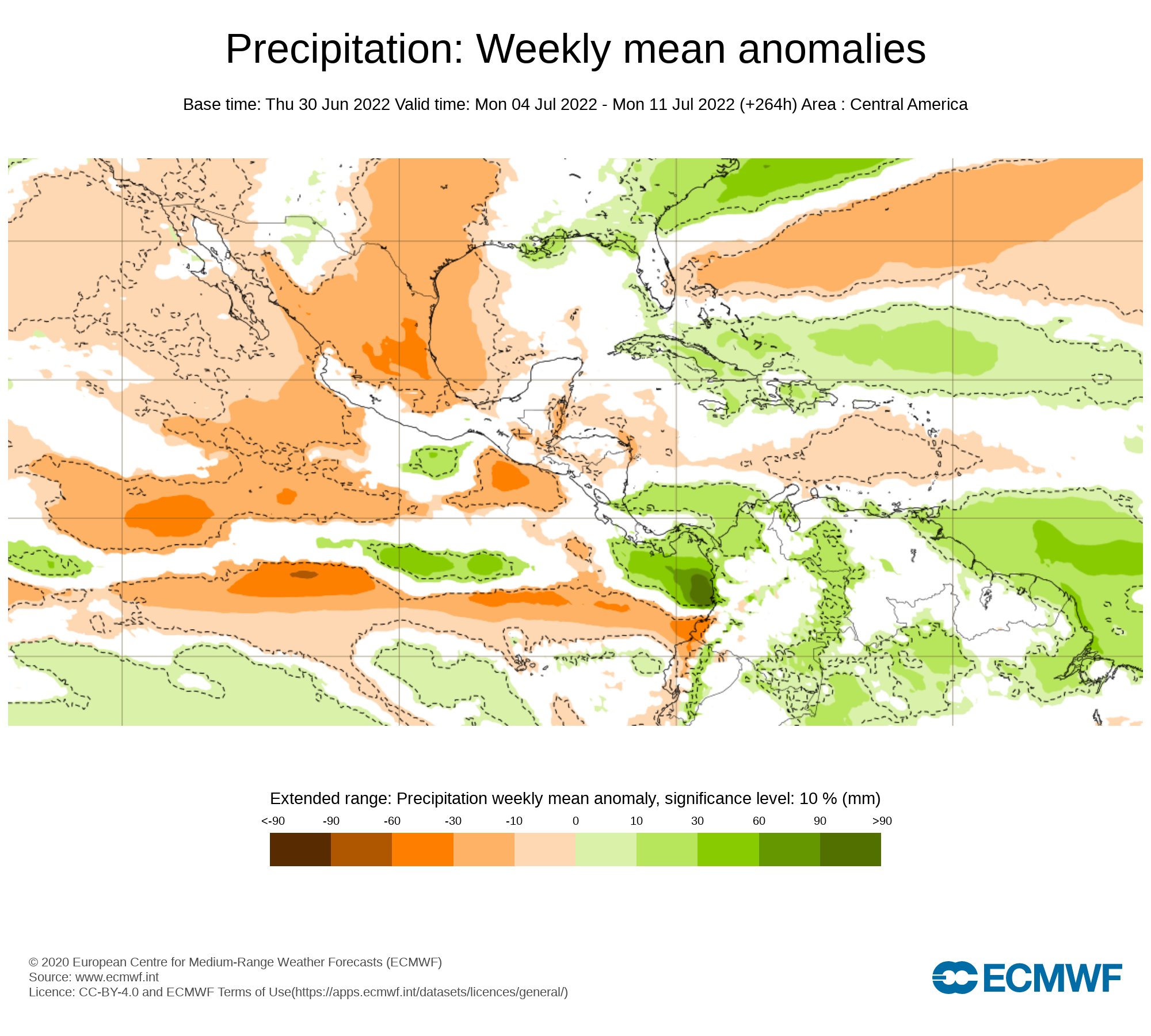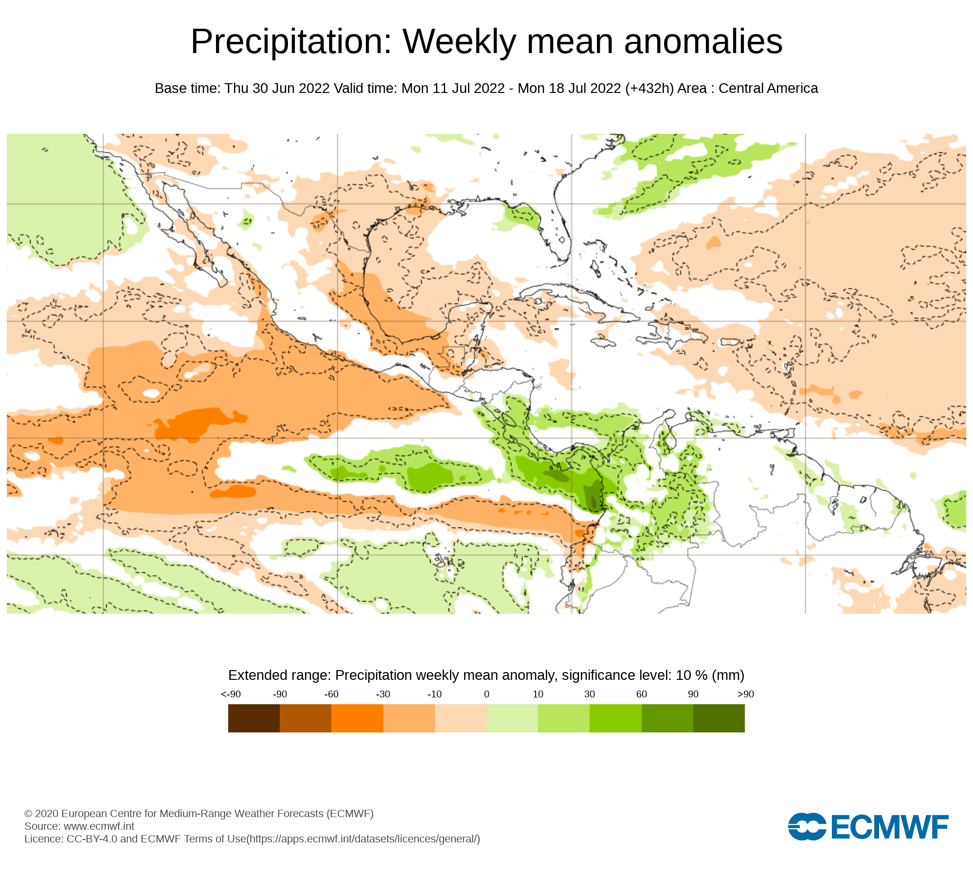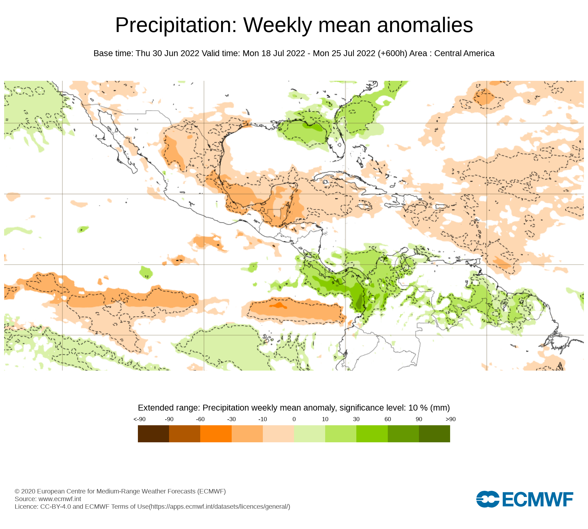 PRONOSTICO DE ANOMALÍAS SEMANALES DE PRECIPITACIÓN DEL 04 AL 30/07/22