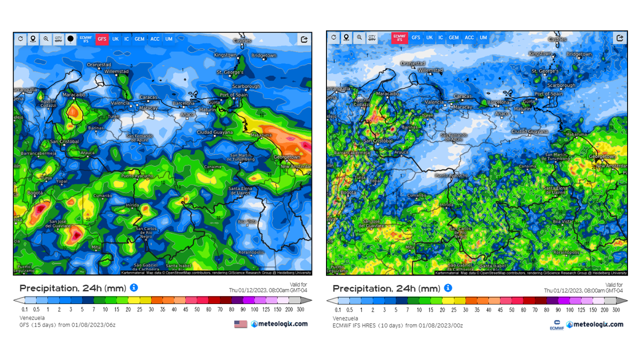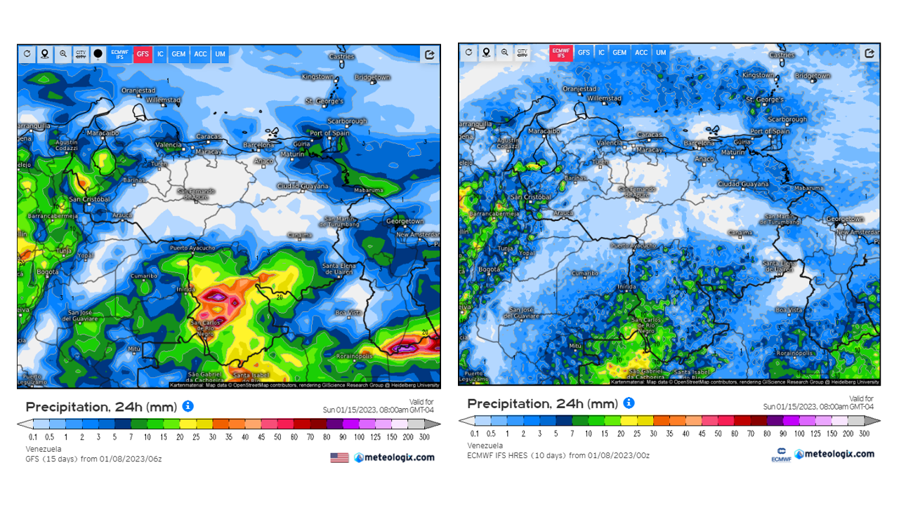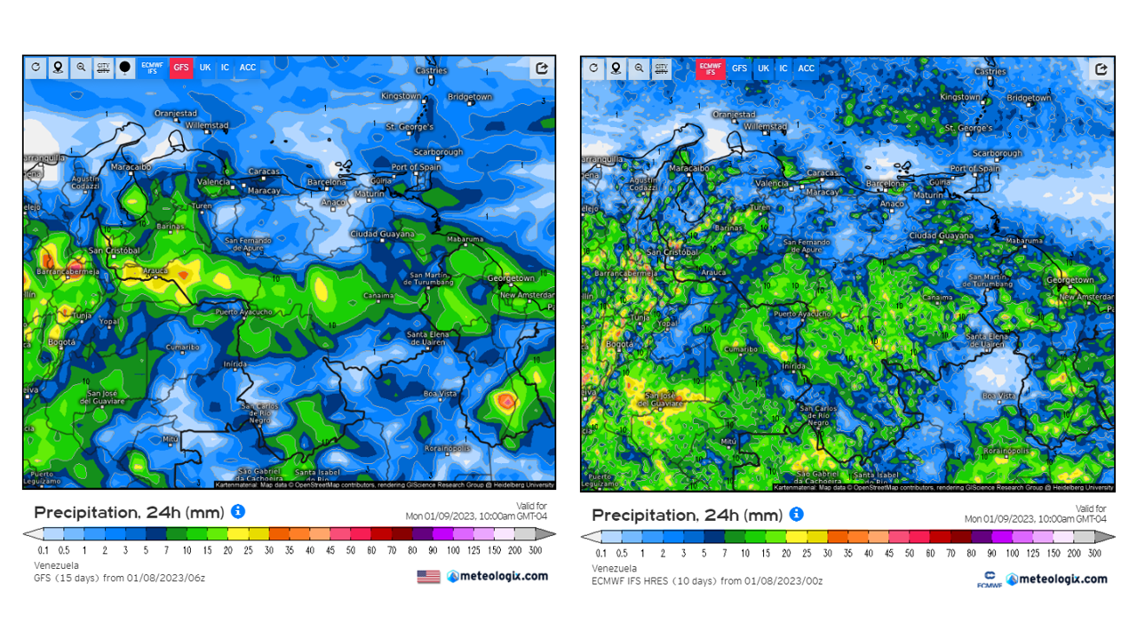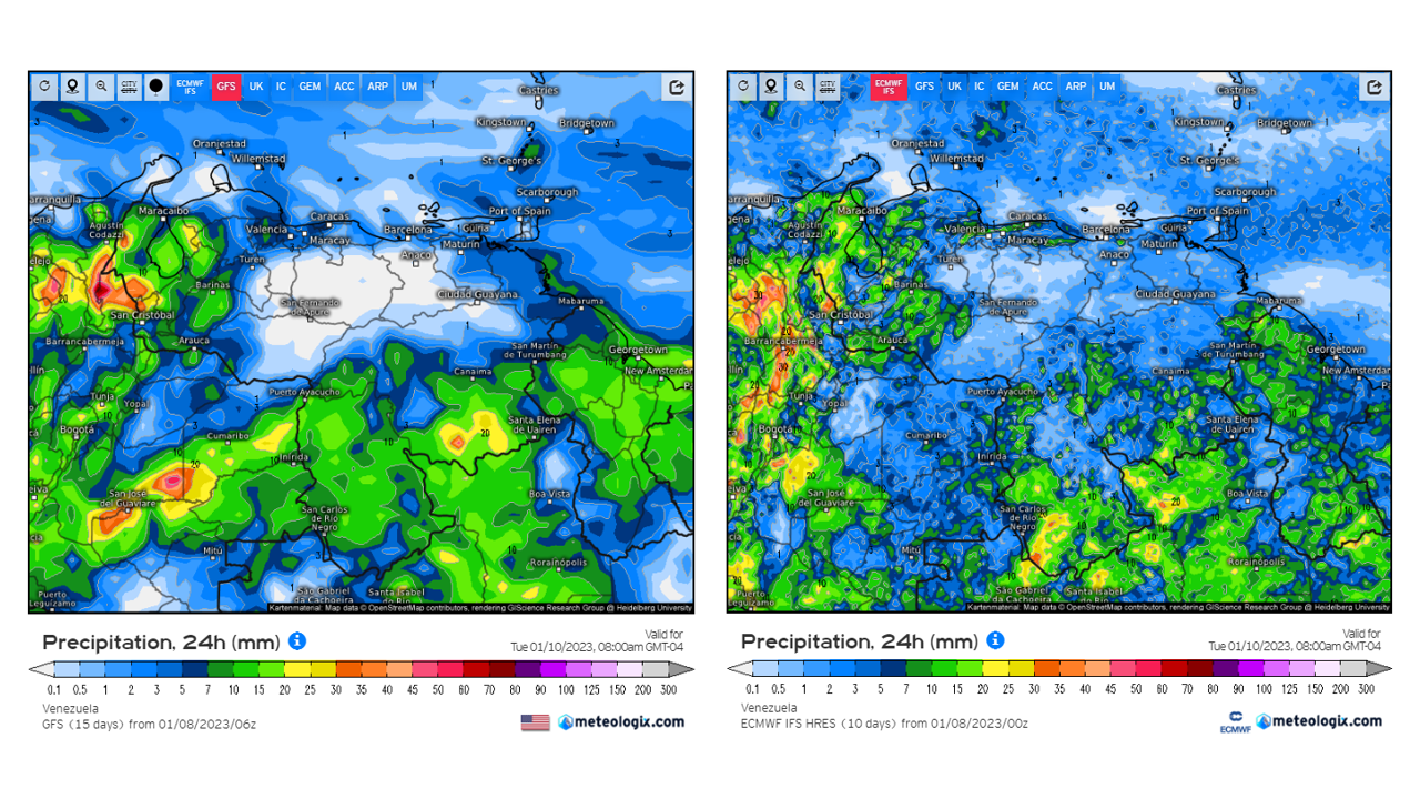 El pronostico semanal emitido por European Centre for Medium-Range Weather Forecast (ECMWF), se esperan eventos de precipitaciones promedio sobre el territorio nacional. Las anomalías positivas mas importantes en los andes, Zulia, Amazonas y Bolívar.