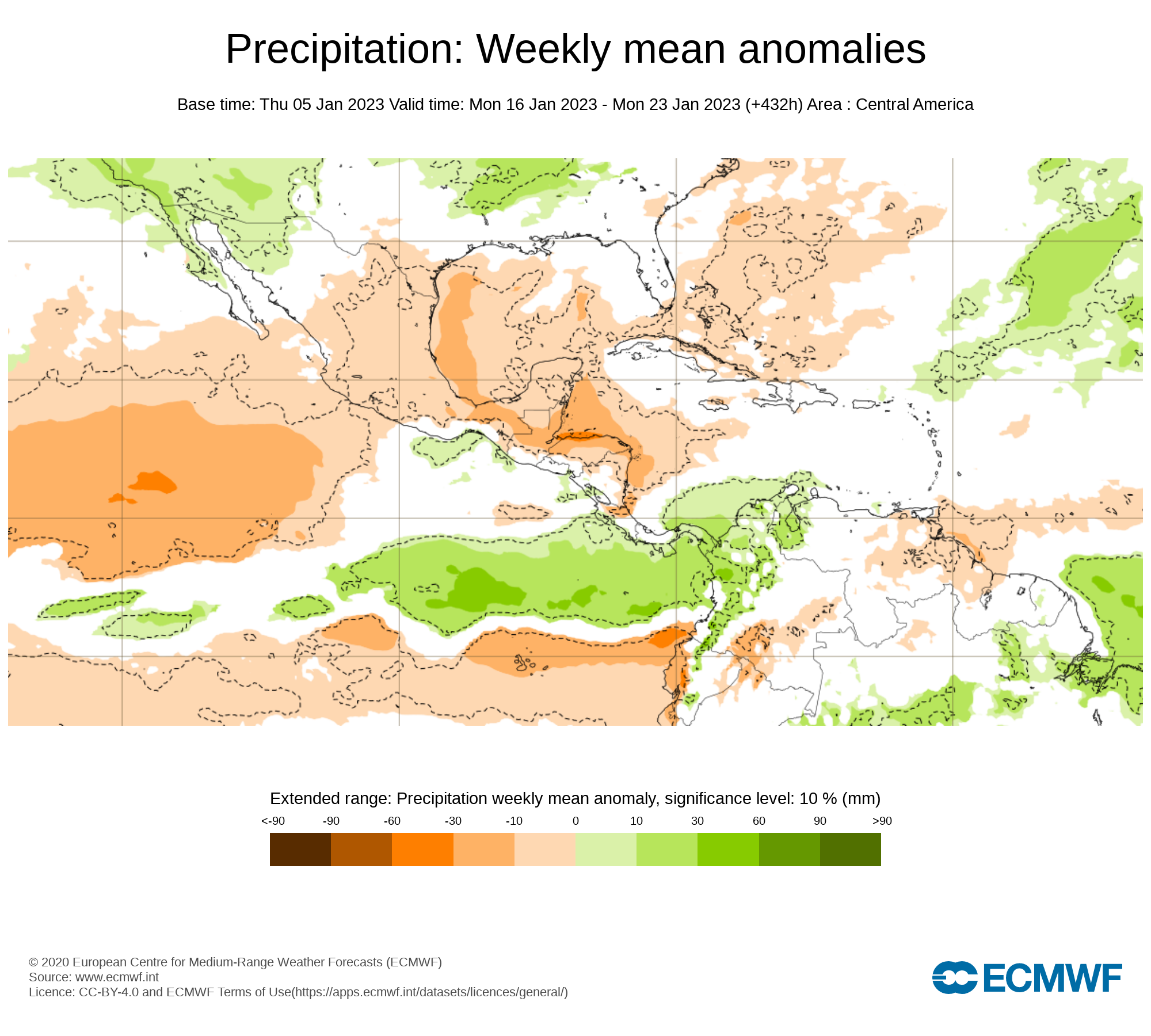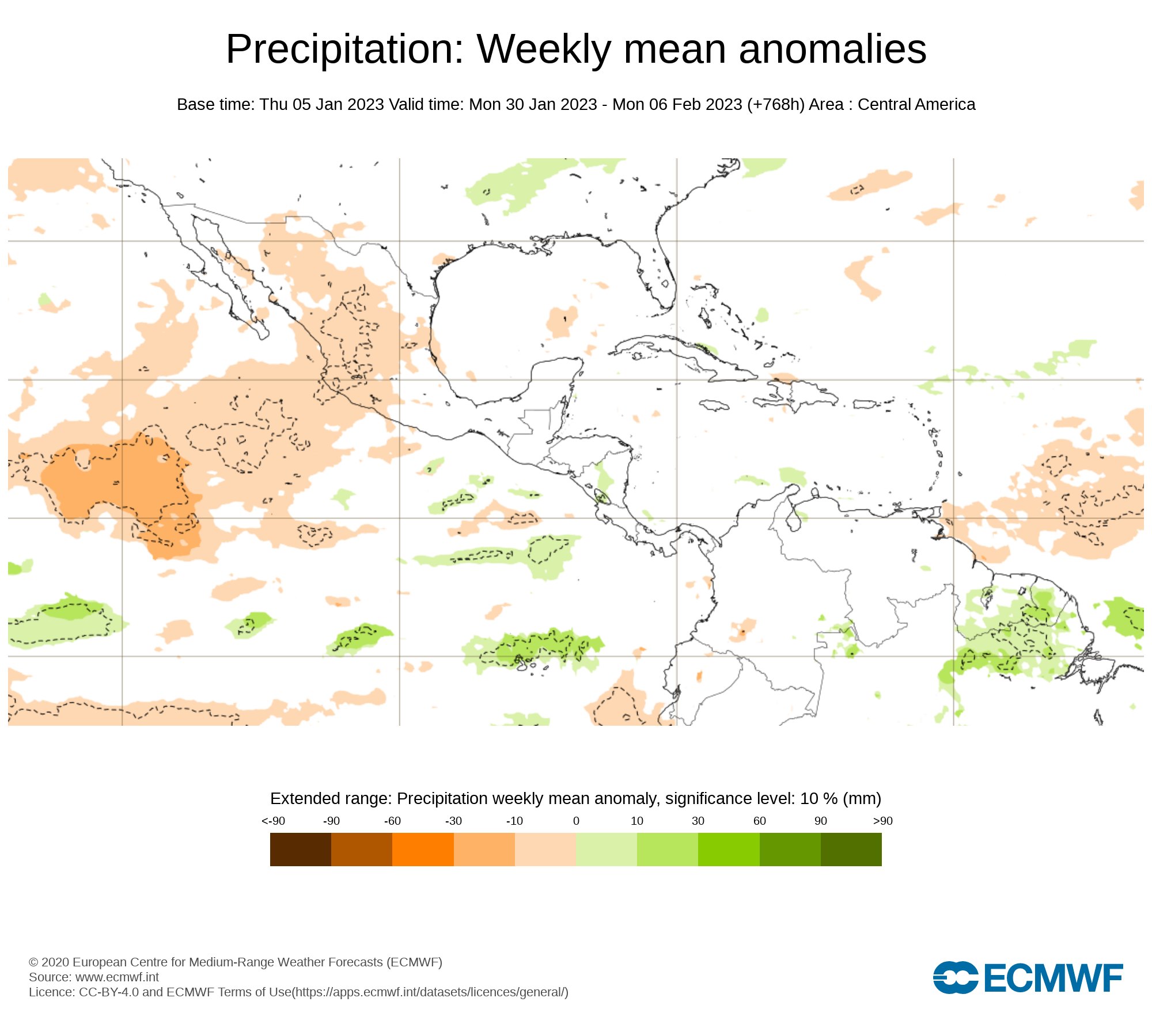 PRONOSTICO DE ANOMALÍAS SEMANALES DE PRECIPITACIÓN DEL 08/01 AL 04/02/23