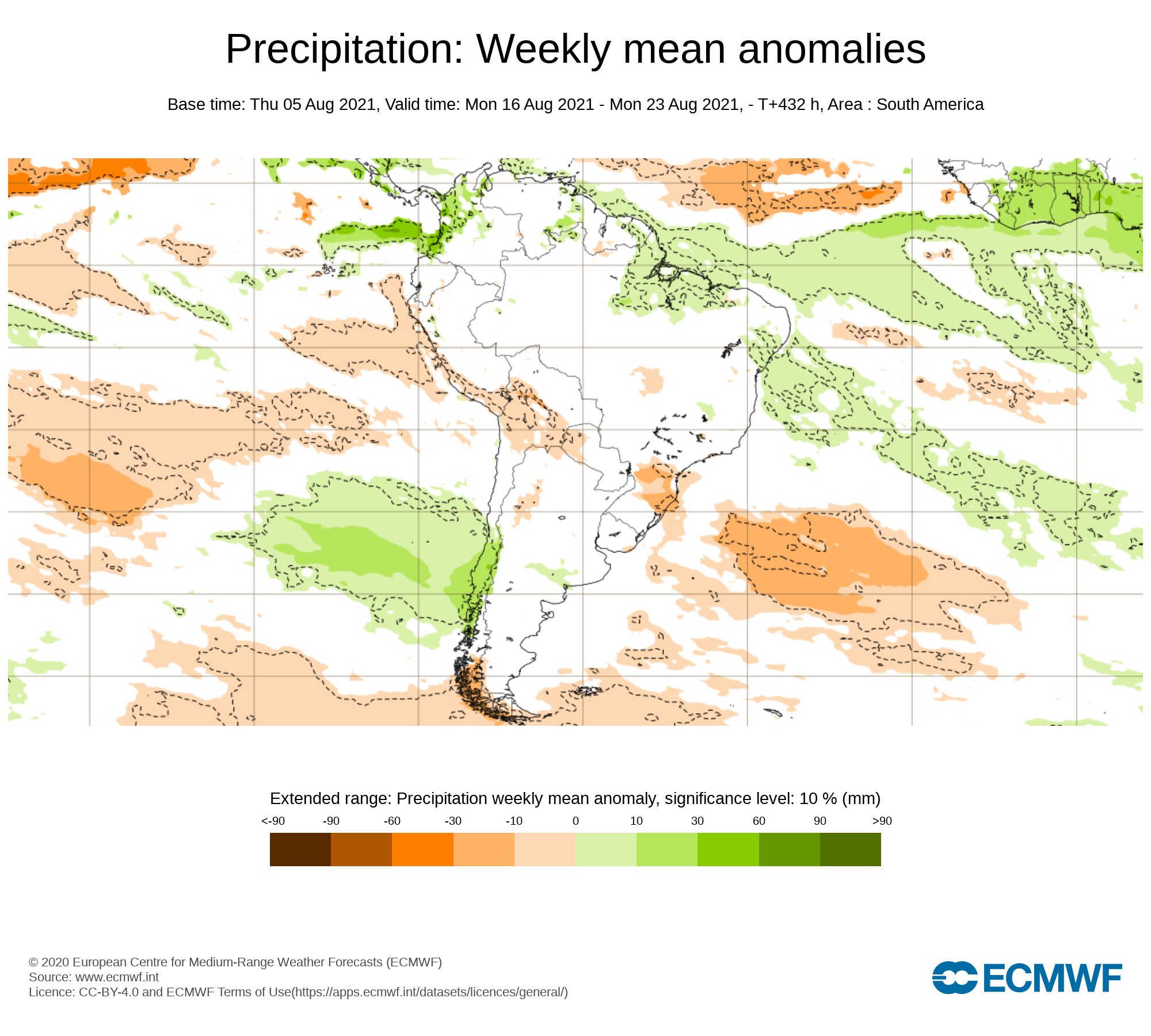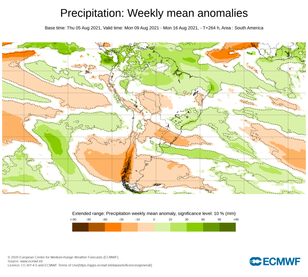 PRONOSTICO DE ANOMALÍAS SEMANALES DE PRECIPITACIÓN DEL 09/08 AL 05/09 DE 2021