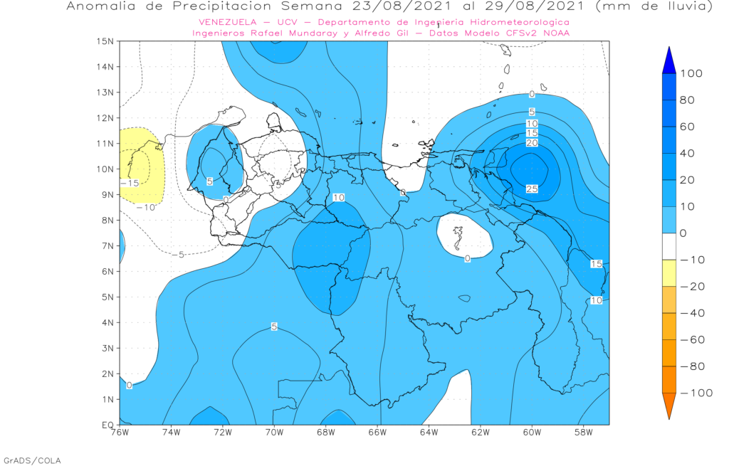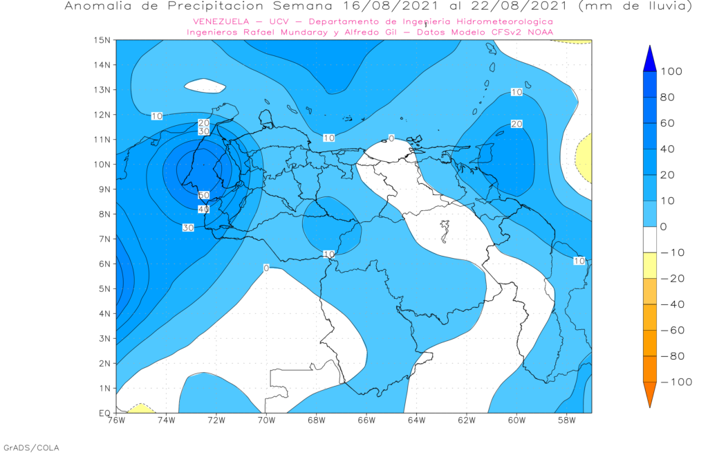 La semana del 16 al 22 de agosto se prevé anomalías positivas en casi todo el territorio nacional, las mas importantes sobre el Zulia
