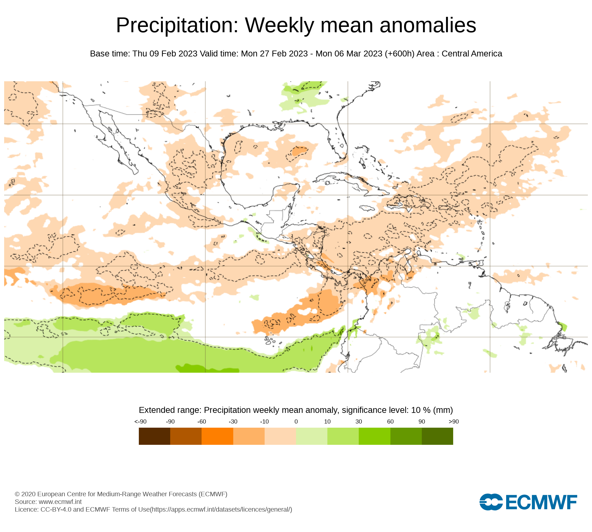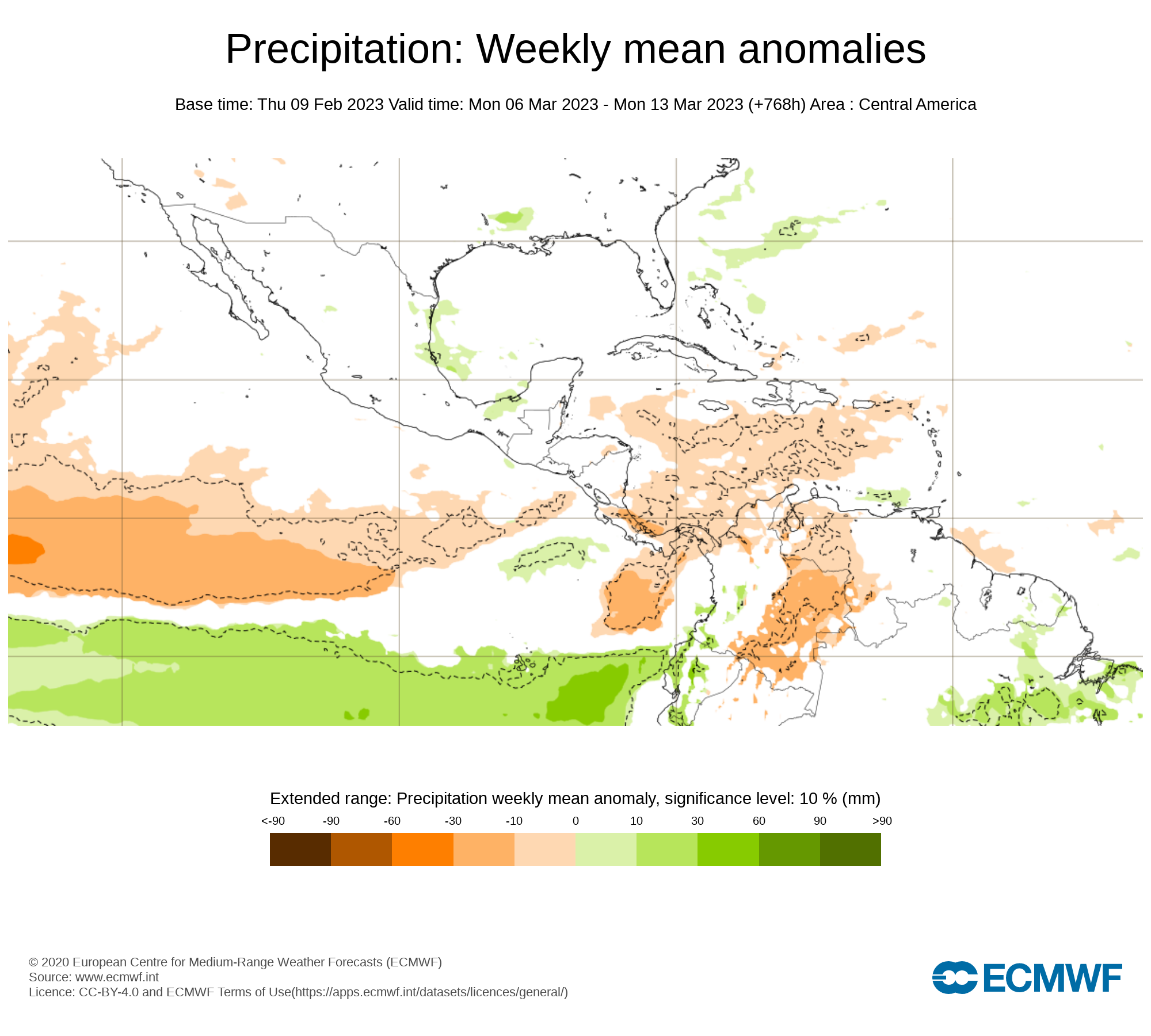 PRONOSTICO DE ANOMALÍAS SEMANALES DE PRECIPITACIÓN DEL 12/02 AL 11/03/23