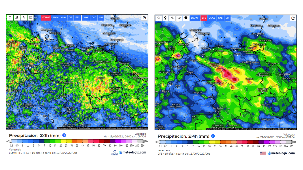 En el pronóstico diario de los modelos GFS y ECMWF del 13 de junio al 09 de julio se espera: