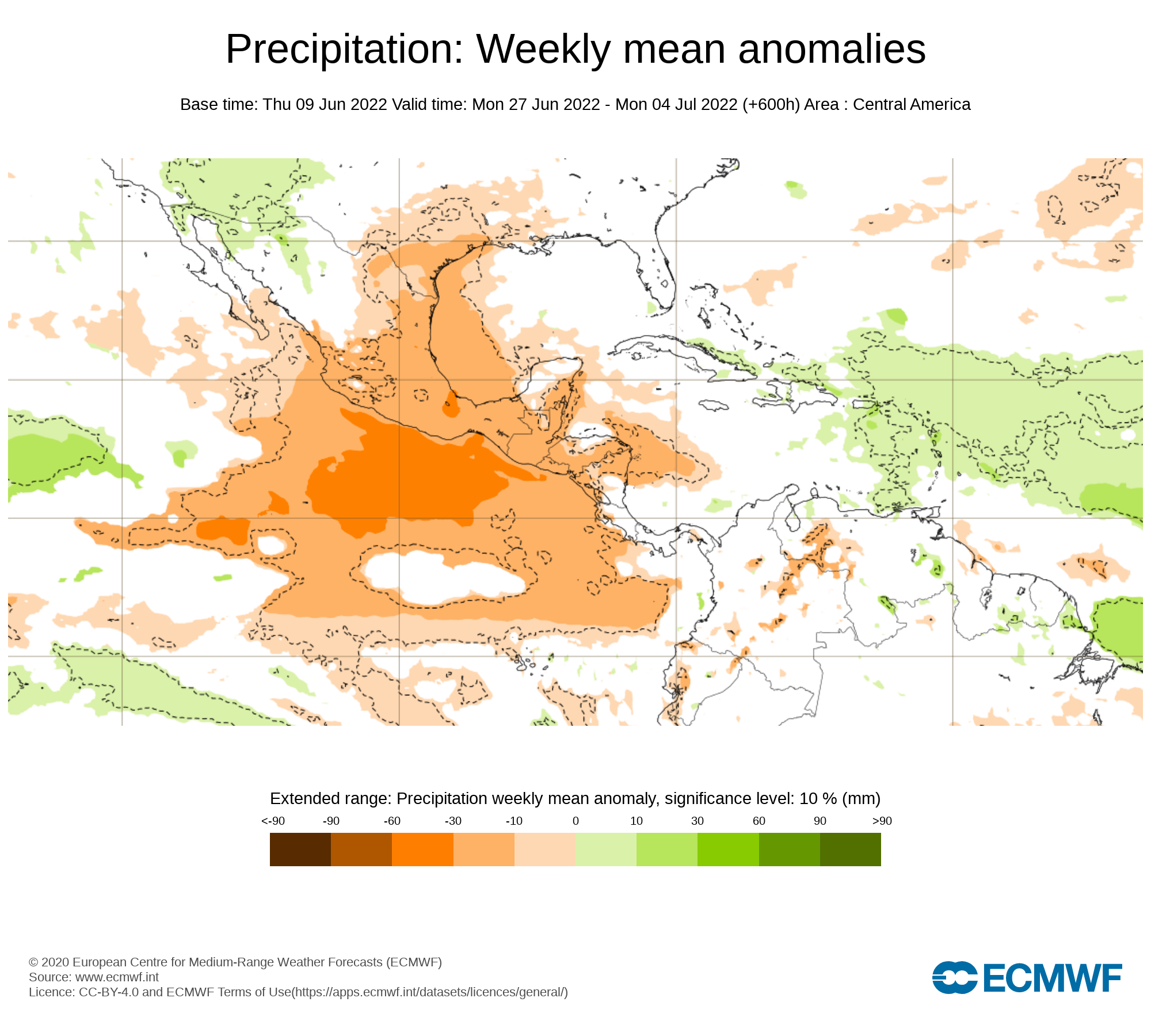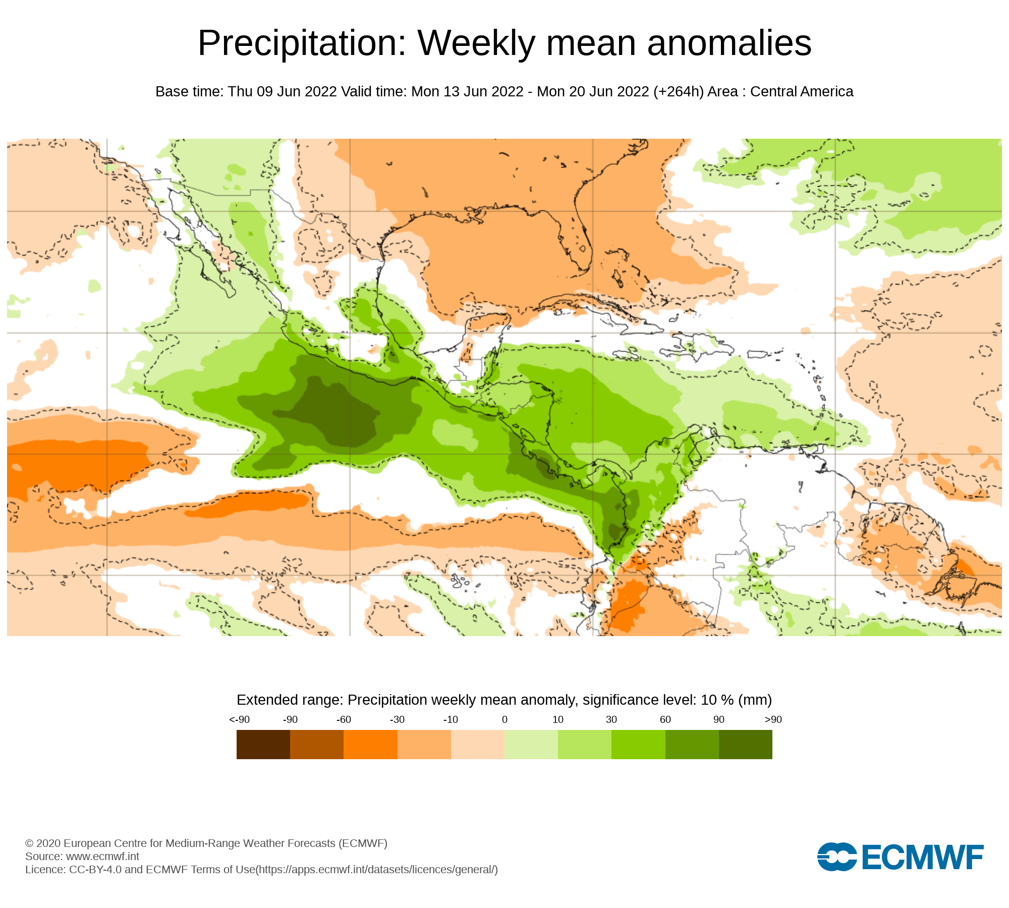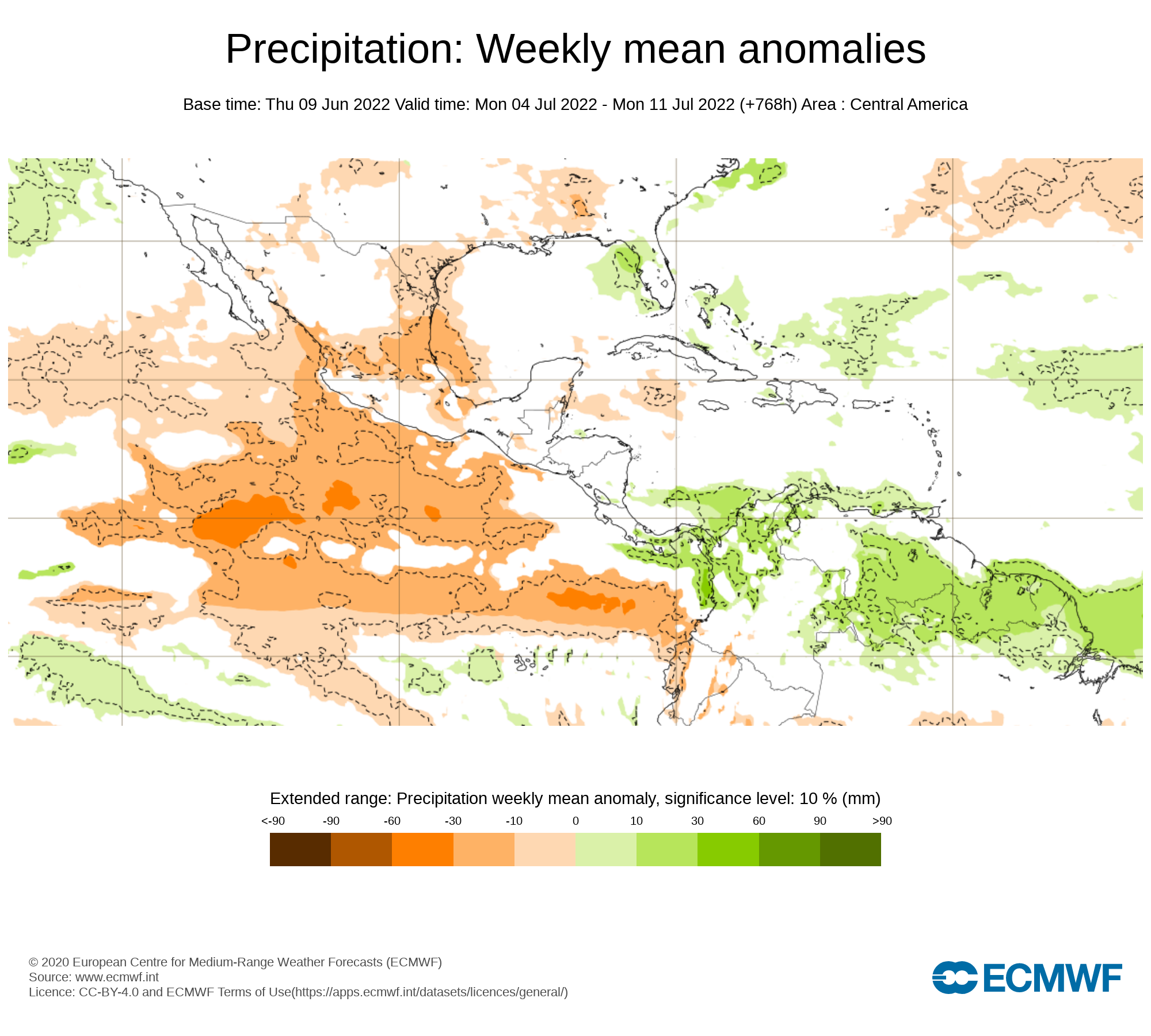 PRONOSTICO DE ANOMALÍAS SEMANALES DE PRECIPITACIÓN DEL 13/06 AL 09/07/22
