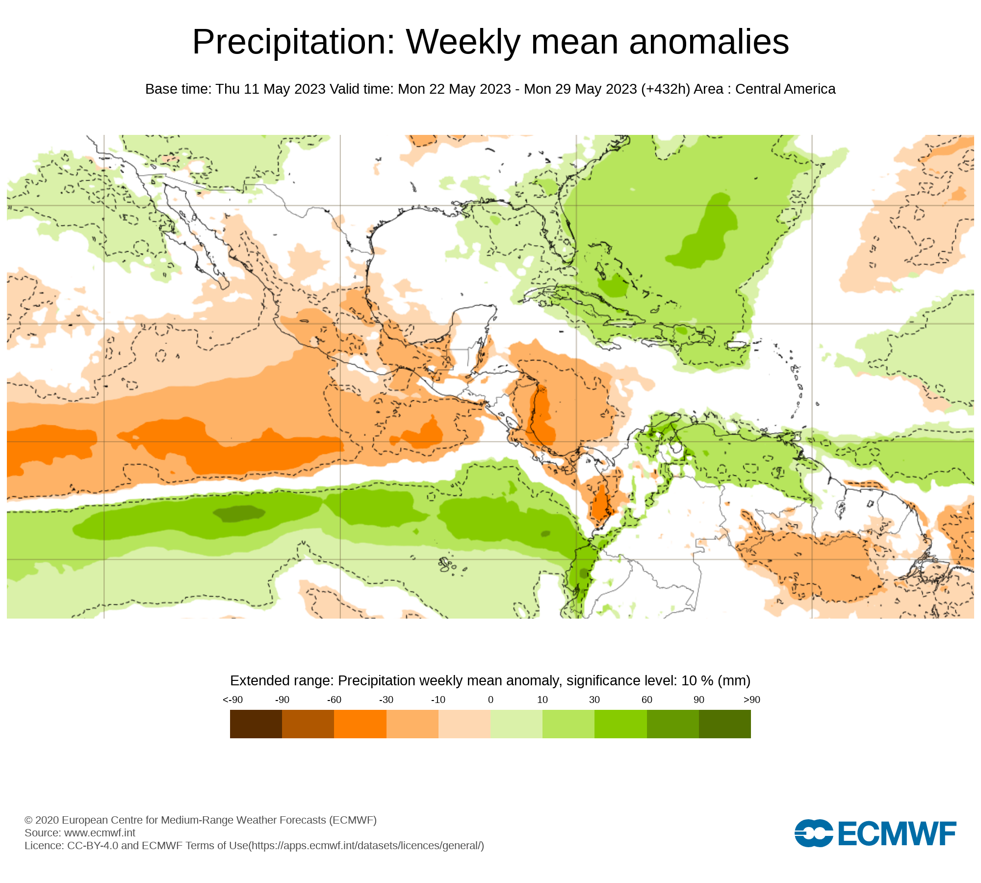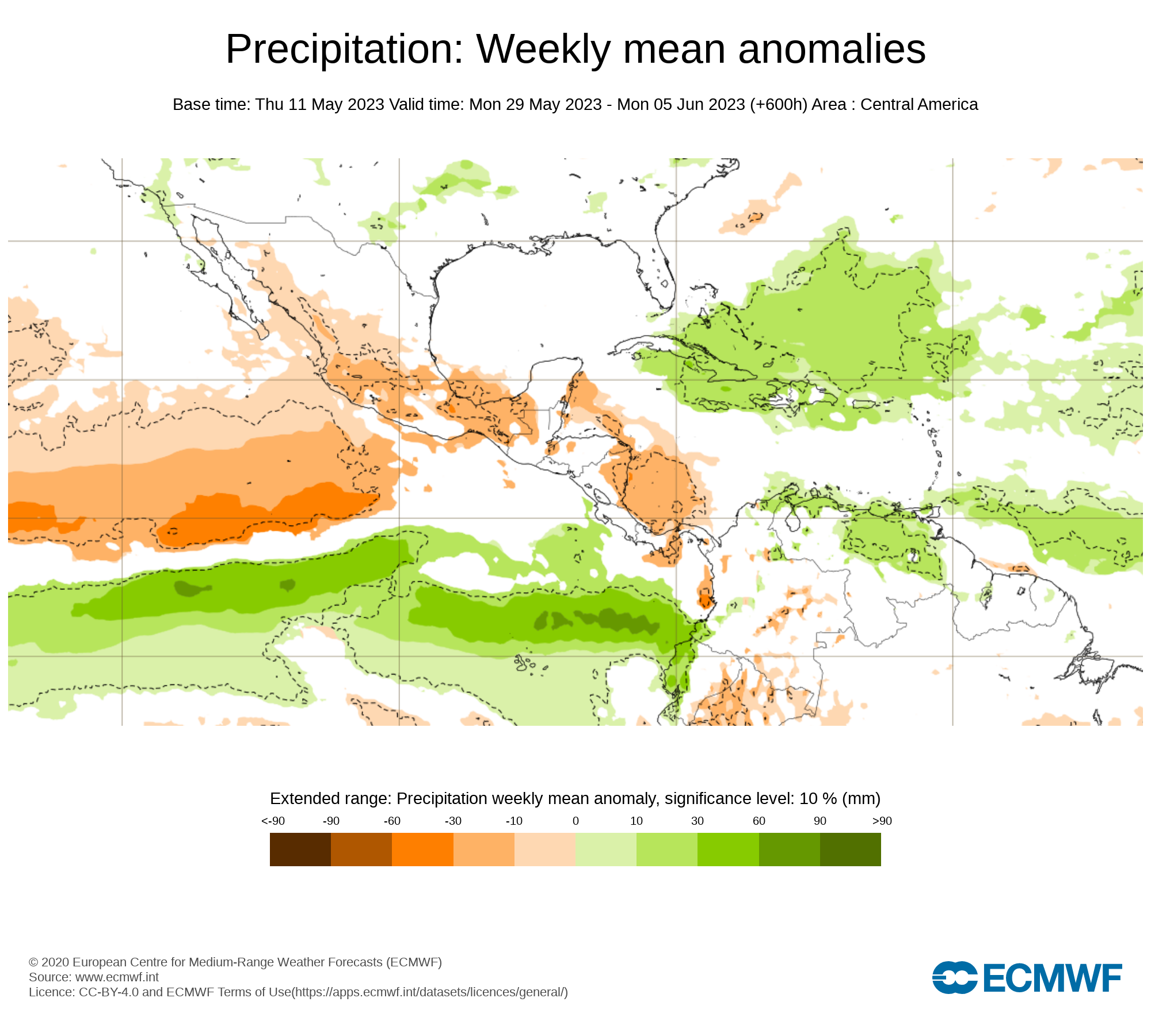 PRONOSTICO DE ANOMALÍAS SEMANALES DE PRECIPITACIÓN DEL 14/05 AL 10/06/23