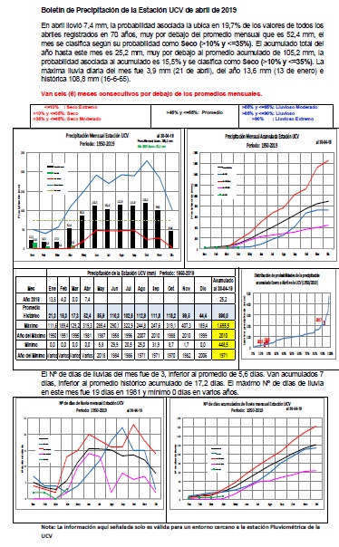 De acuerdo a la estadística de las precipitaciones estimadas para esta semana, se observa que los eventos más importantes se mantiene al sur del país, suroeste de Zulia, sur de Apure y sur de Guárico. Ya se observa que las lluvias por encima de los 40 mm se ubican al sur de 8 norte, debilitándose las lluvias a lo largo de la cordillera andina, Falcón, cuenca baja del Caroní, Lara, llanos occidentales, oeste de Guárico, noreste de  Bolívar  y  sureste de Amazonas.