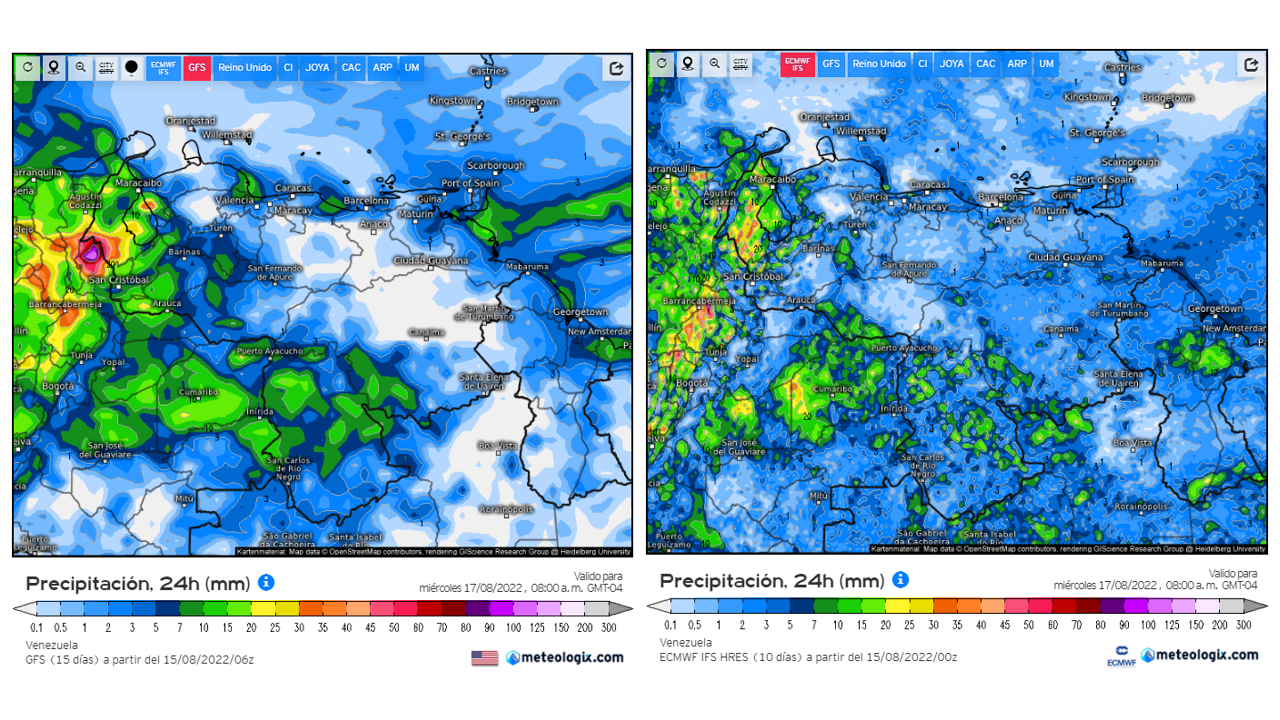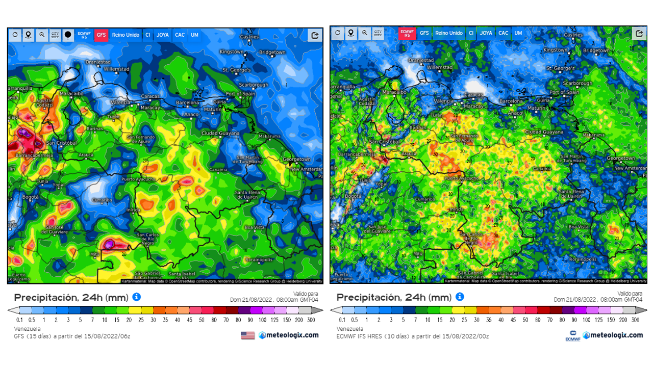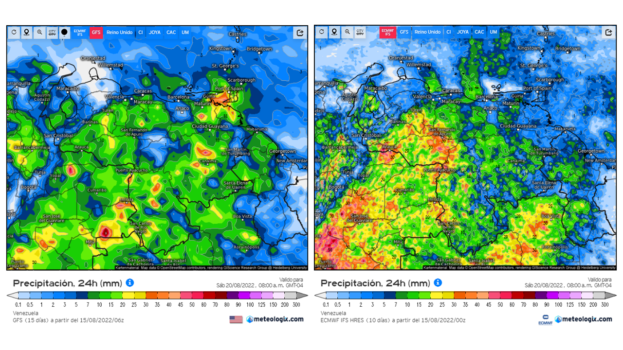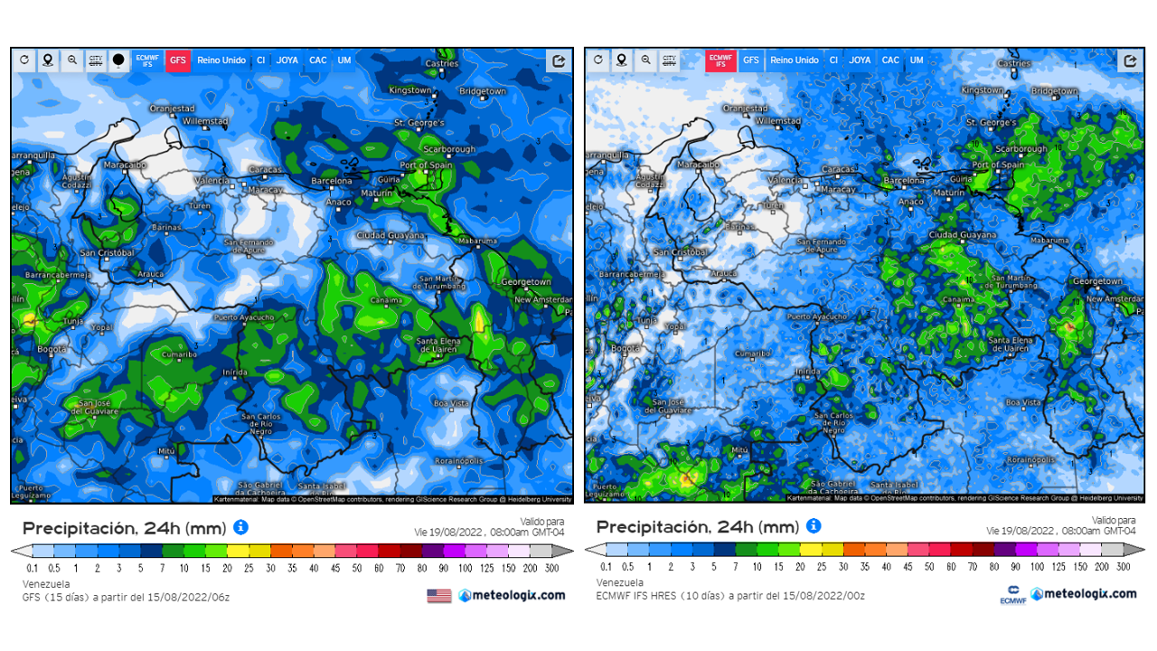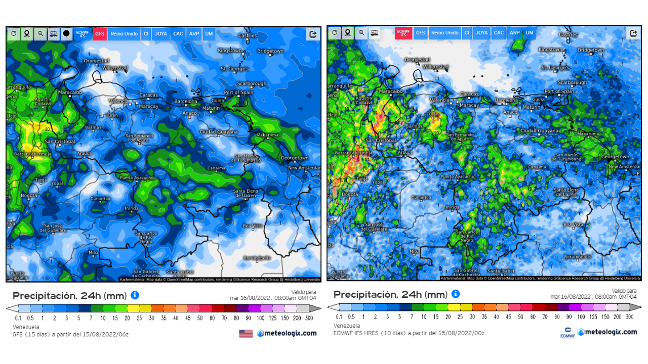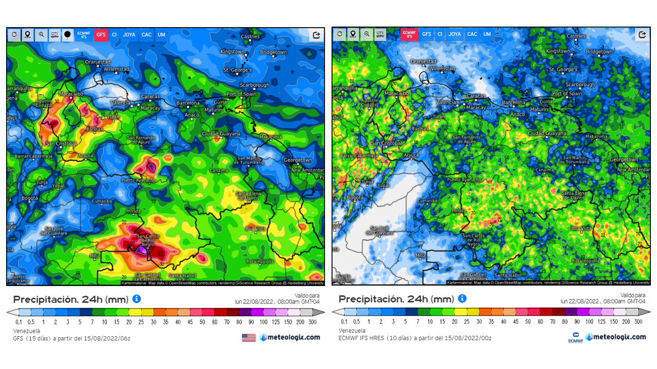 El pronostico semanal emitido por European Centre for Medium-Range Weather Forecast (ECMWF), se esperan eventos de precipitaciones  promedio sobre el territorio nacional, las anomalías mas importantes se esperan en  los andes,  Falcón, Anzoátegui, Sucre, Monagas, Amazonas y Bolívar.