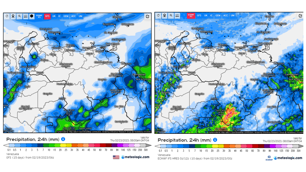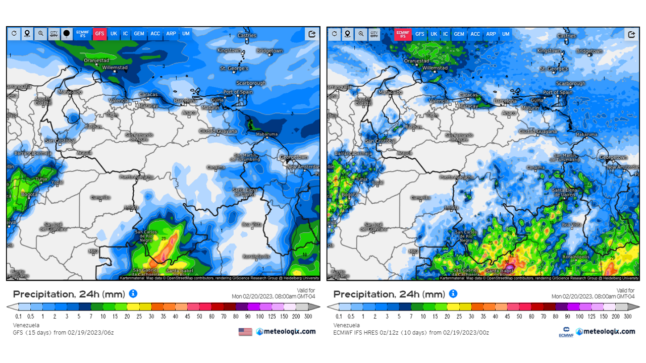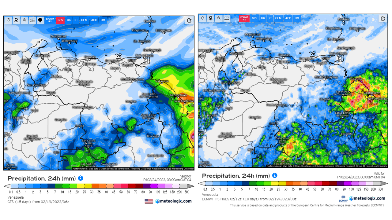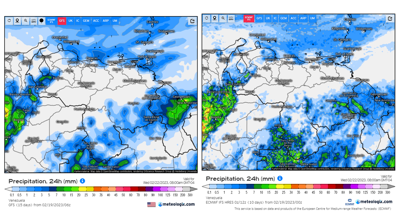 El pronostico semanal emitido por European Centre for Medium-Range Weather Forecast (ECMWF), se esperan eventos de precipitaciones promedio sobre el territorio nacional, con anomalías negativas en los andes, suroeste de bolívar y norte de Amazonas