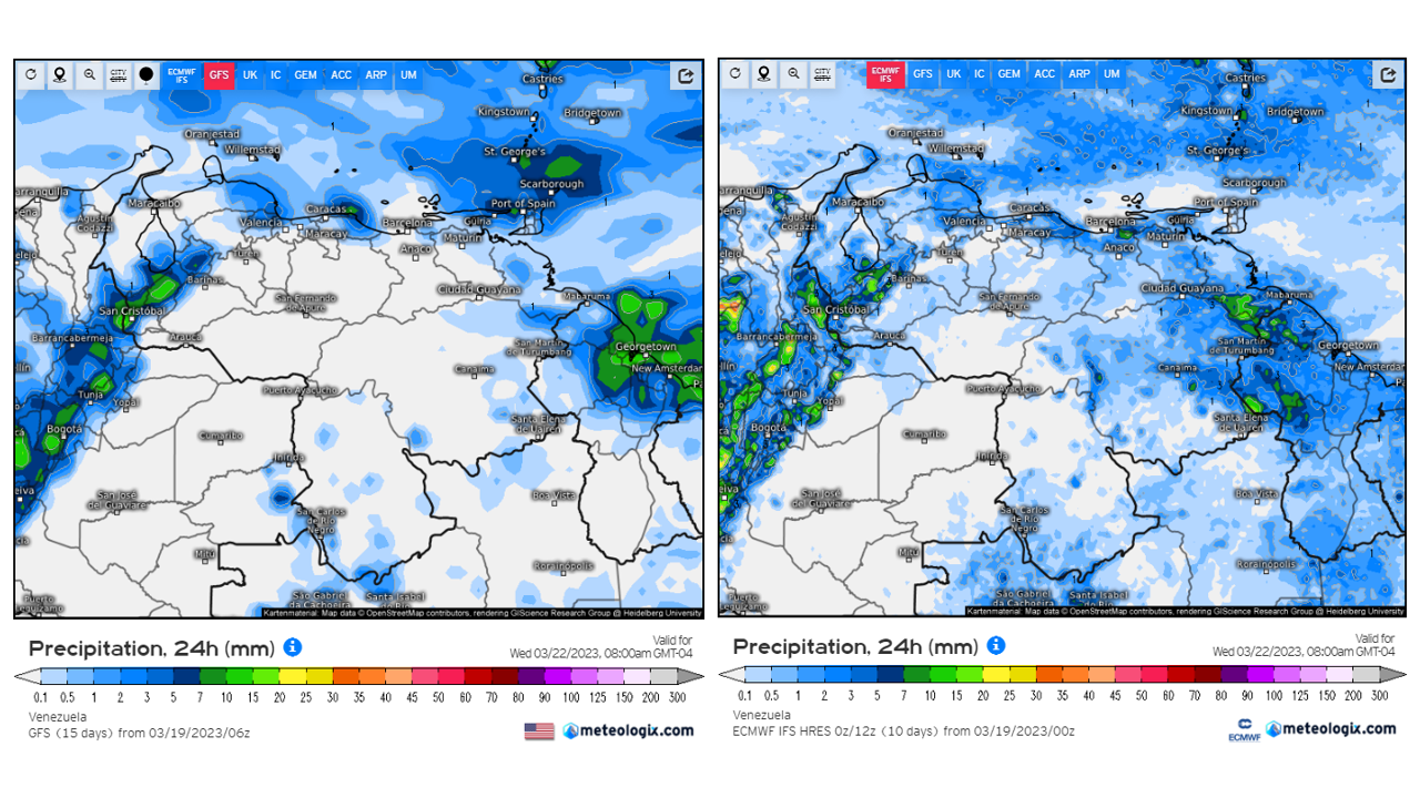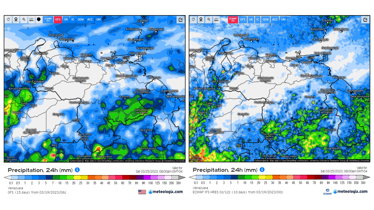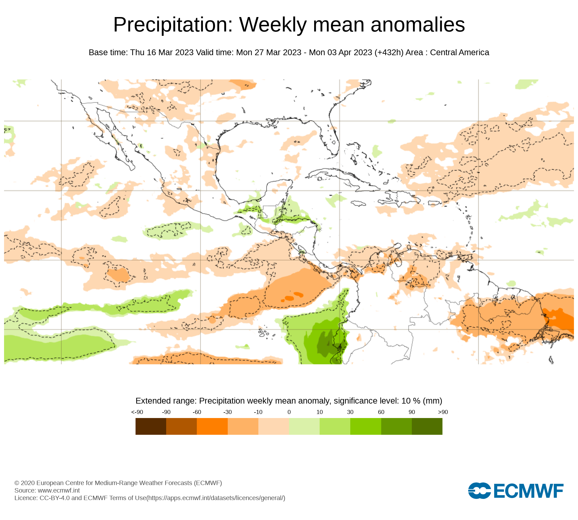 El pronostico semanal emitido por European Centre for Medium-Range Weather Forecast (ECMWF), se esperan eventos de precipitaciones promedio sobre el territorio nacional. Con anomalías negativas oeste de Amazonas y Táchira.