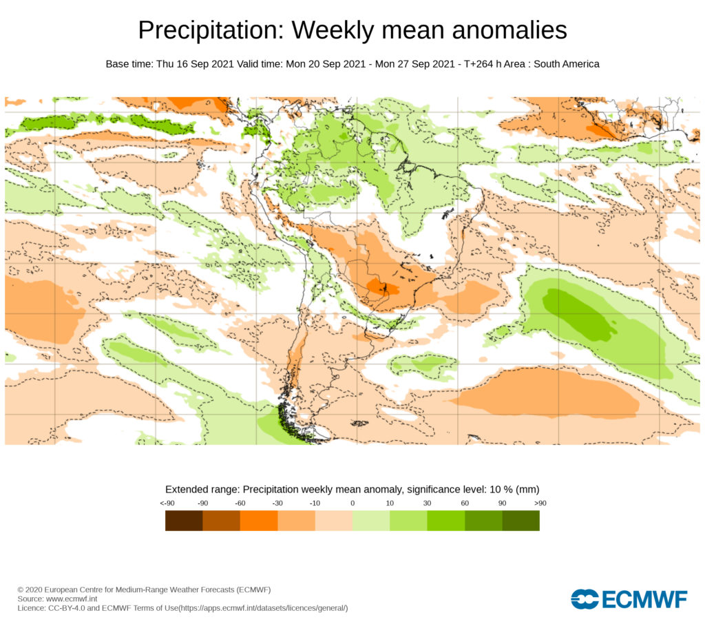 PRONOSTICO DE ANOMALÍAS SEMANALES DE PRECIPITACIÓN DEL 20/09 AL 17/10 DE 2021