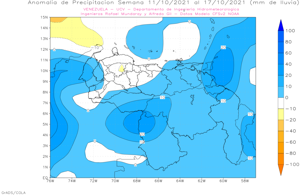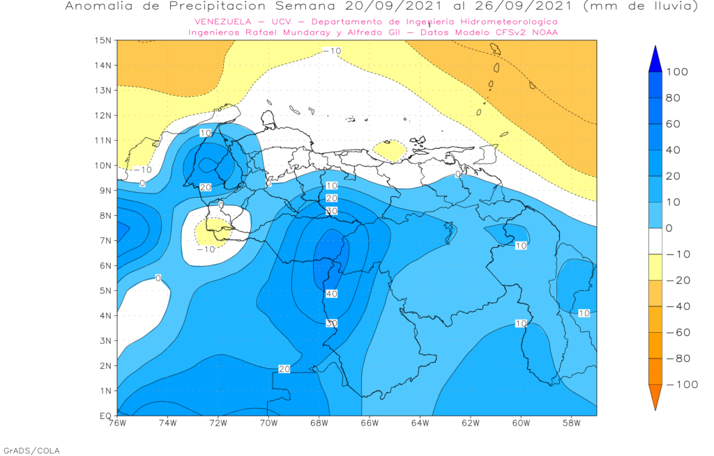 En la semana del 20 al 26 de septiembre se prevé anomalías positivas en casi todo el territorio nacional, las anomalías positivas mas importante se esperan este de los estados Apure y Barinas, sur de Guárico y Zulia.