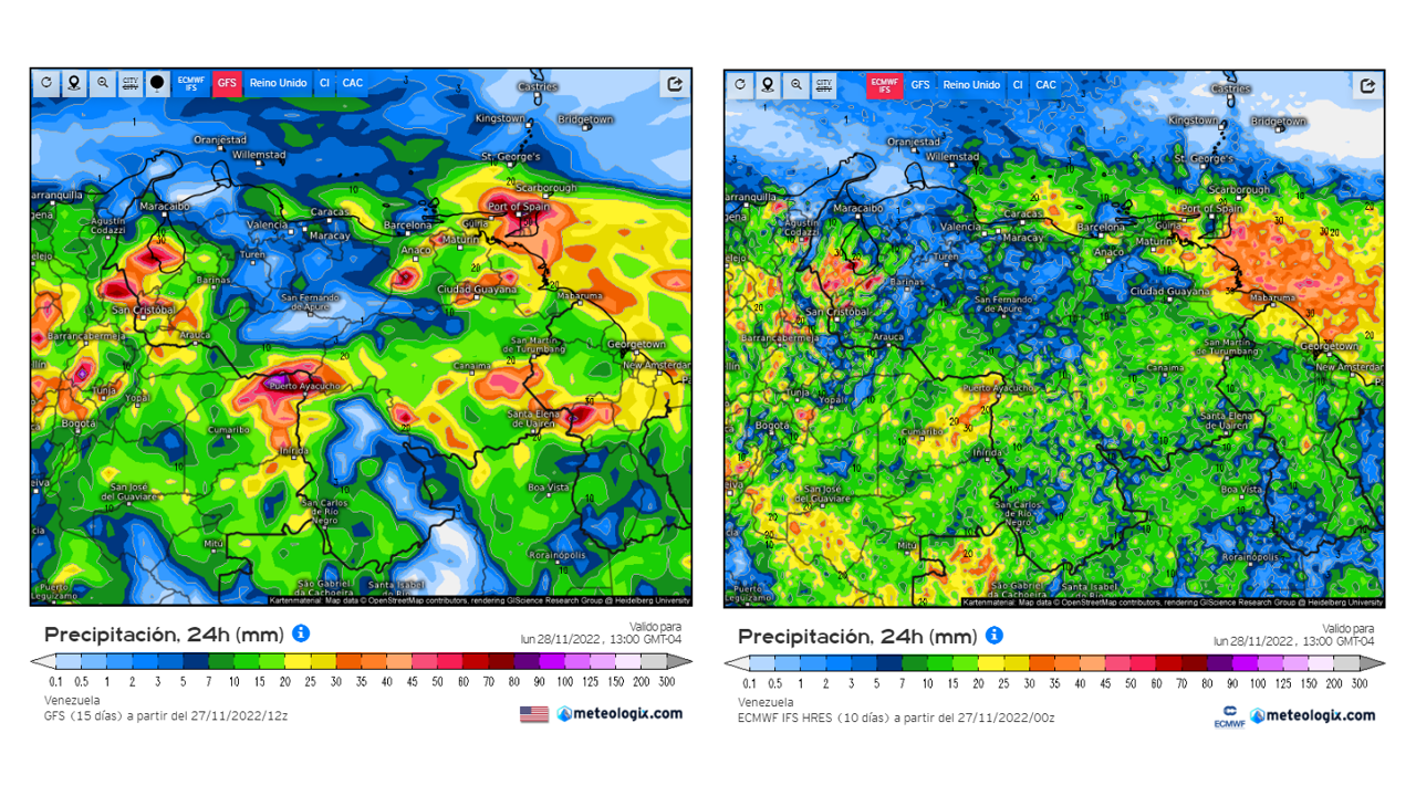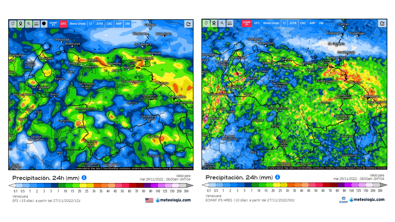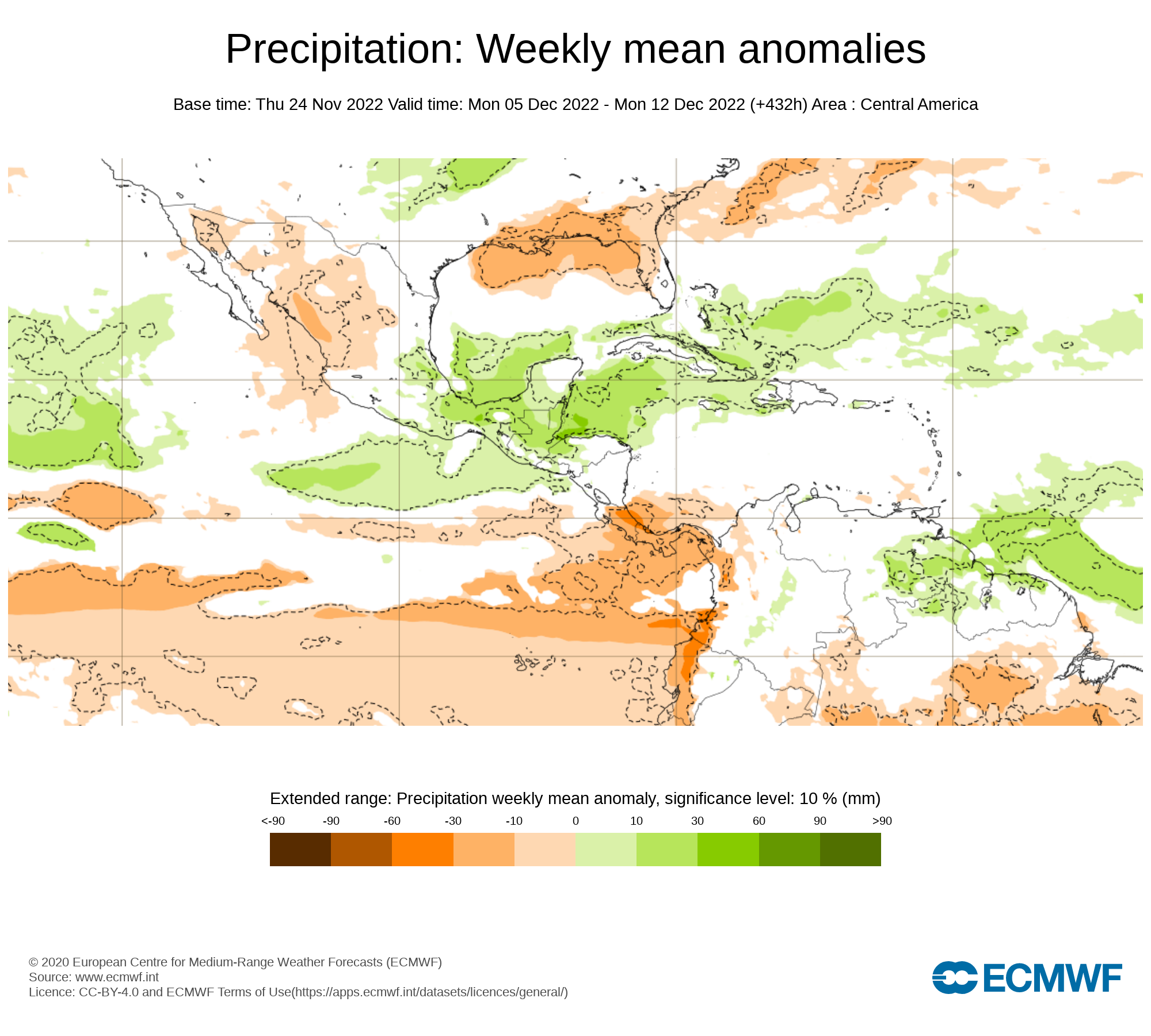 El pronostico semanal emitido por European Centre for Medium-Range Weather Forecast (ECMWF), se esperan eventos de precipitaciones promedio sobre el territorio nacional. Anomalías positivas al este de Bolívar.