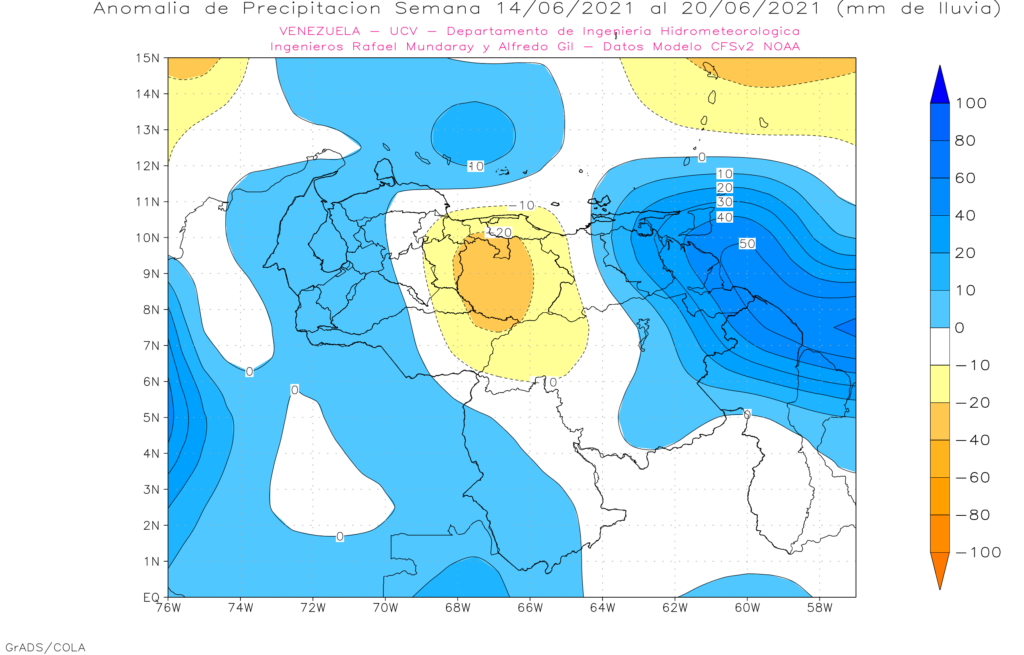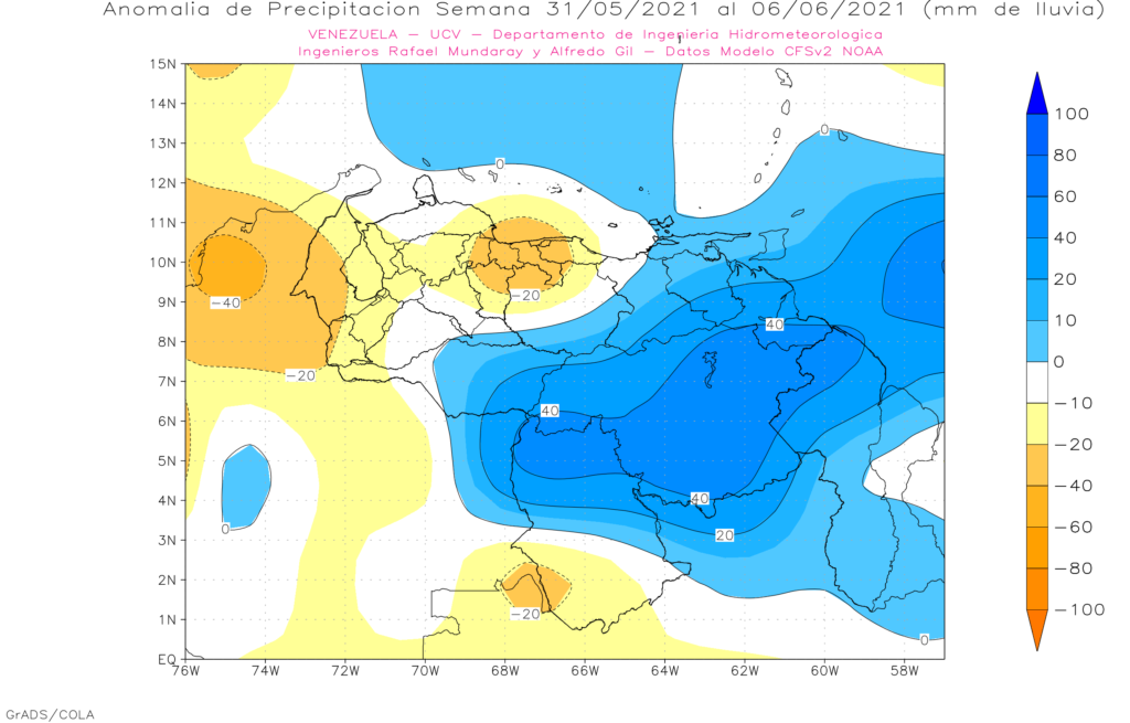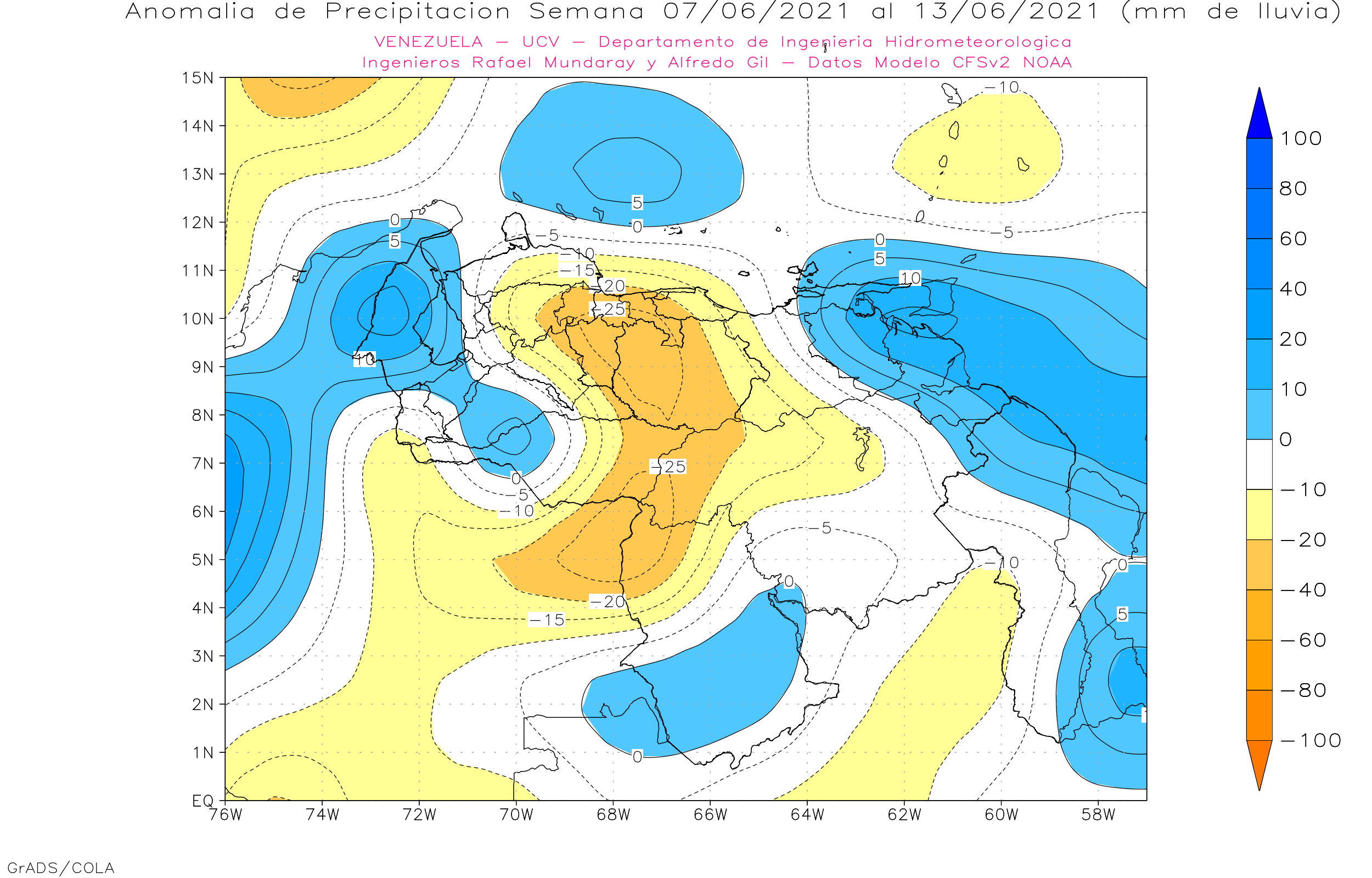 La semana del 07 al 13 de junio, se preve anomalís negativas en la región central y llanos occidentales, anomalías positivas en Zulia.