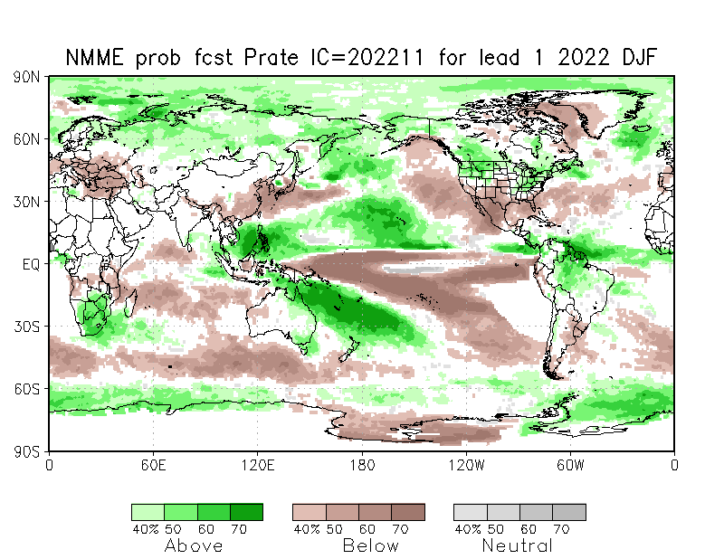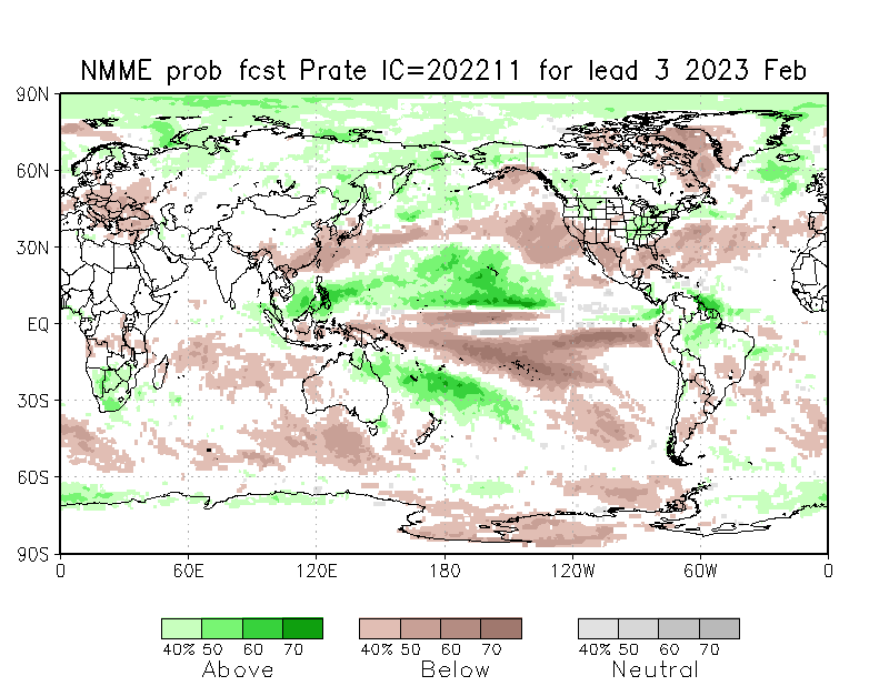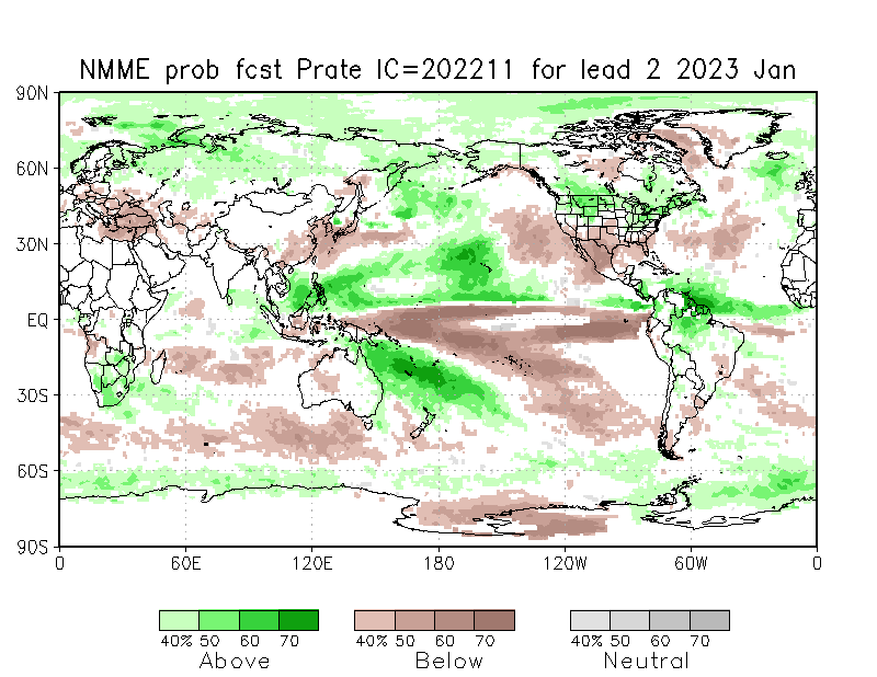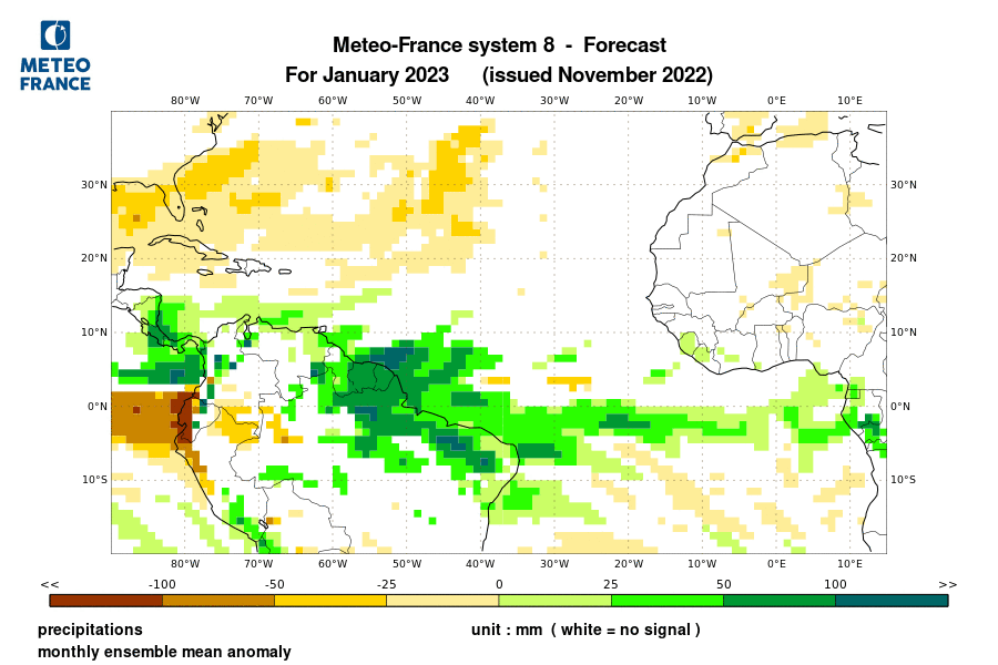 The North American Multi-Model Ensemble (NMME), Deutscher Wetterdienst de Alemania, Meteo France de Francia, ECMWF europeo, IRI y CFSv2 de Estados Unidos). Se observa que para el trimestre DIC/2022-ENE-FEB/2023