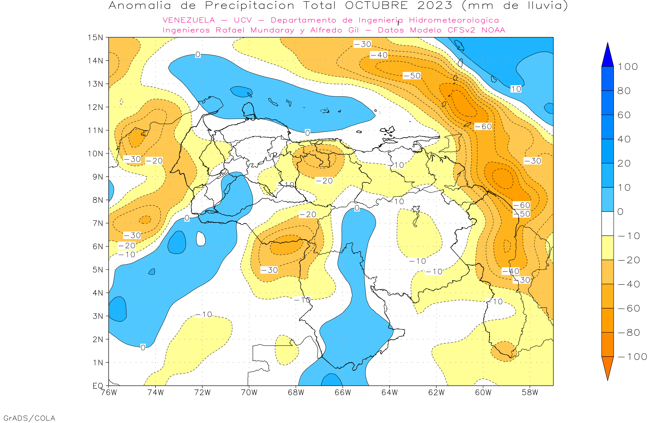 La región andina (Táchira, Mérida y Trujillo) 7 (100 %) modelo dan anomalías negativas.