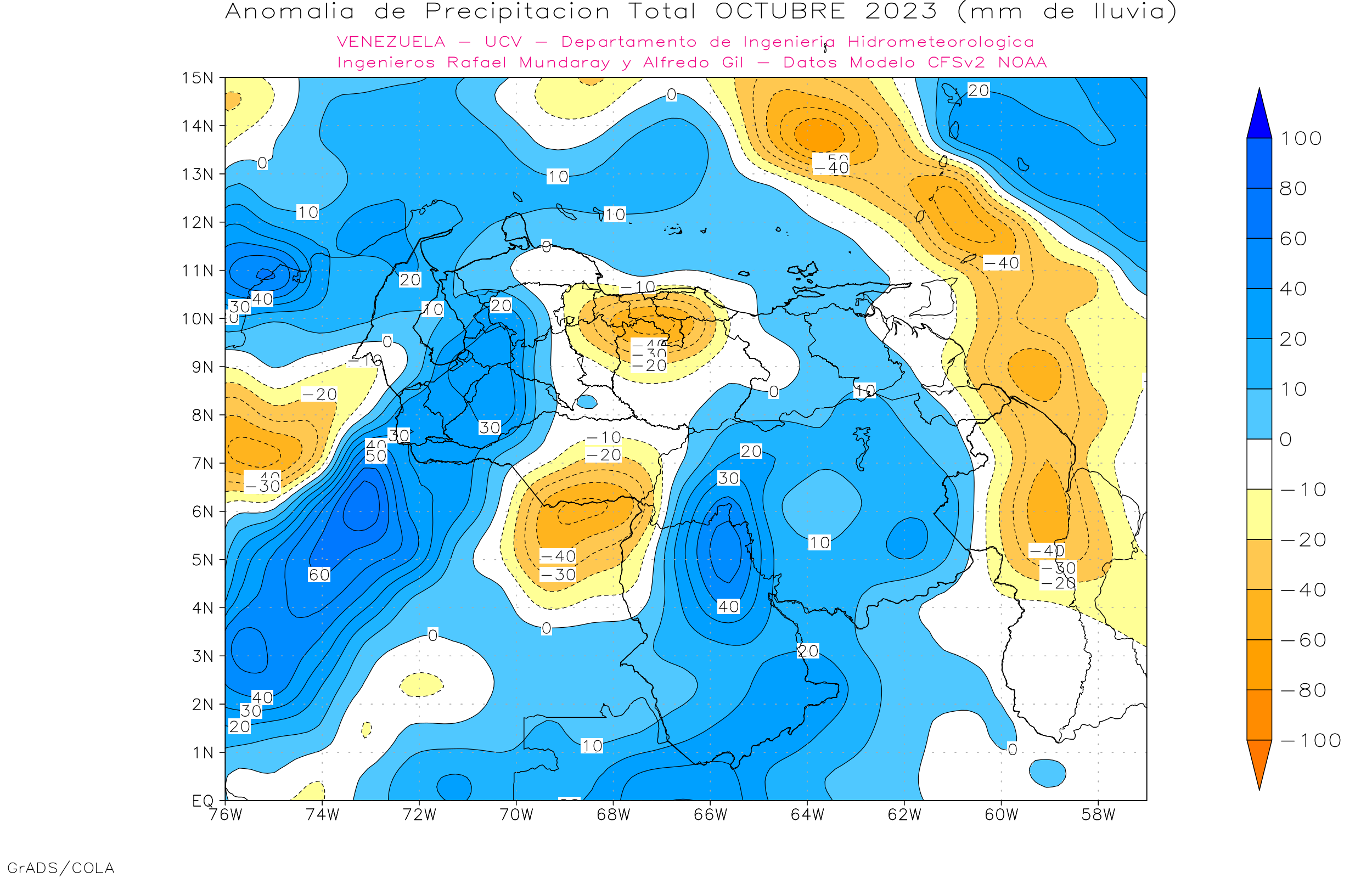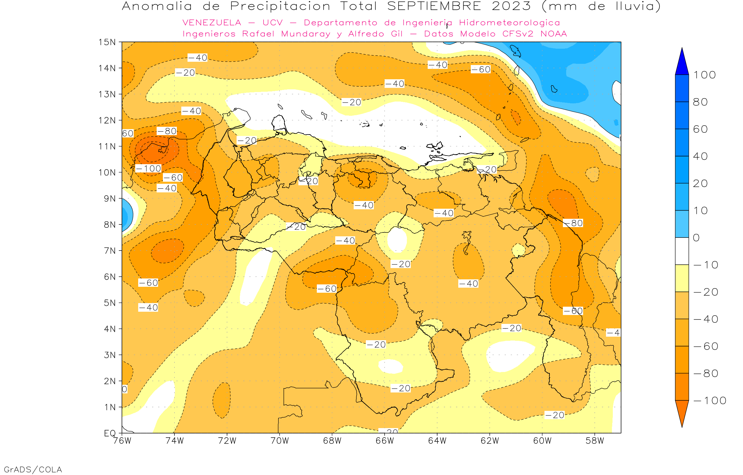 La región andina (Táchira, Mérida y Trujillo) 1 (11.8 %) modelos dan precipitación promedio, y 8 (88.9 %) modelo dan anomalías negativas.