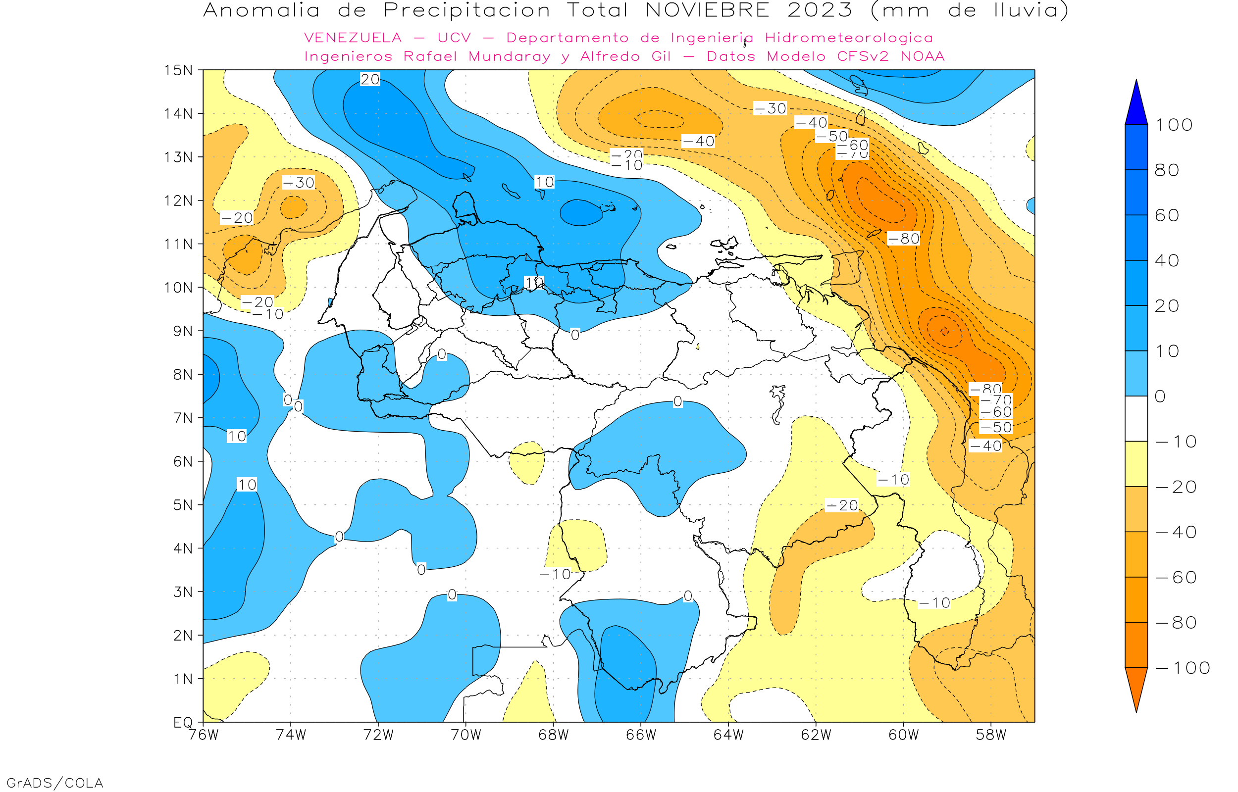 De acuerdo a la estadística de la precipitación estimada ( NOAA NCEP CPC CMORPH, daily_calculated) durante el trimestre Sep-Oct_Nov, los principales eventos de precipitaciones se ven en Amazonas, sur de Bolívar y Zulia los menores eventos se observa en la franja norte costera, llanos orientales, las precipitaciones por encima de los 900 mm se ubican al sur de 7° norte.