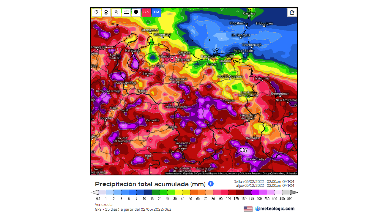 PRONOSTICO DE ANOMALÍAS SEMANALES DE PRECIPITACIÓN DEL 02 AL 29/05/22 Pronostico de Anomalías Semanales para Venezuela, del 02 al 29/05/22, usando datos del Modelo CFSv2…