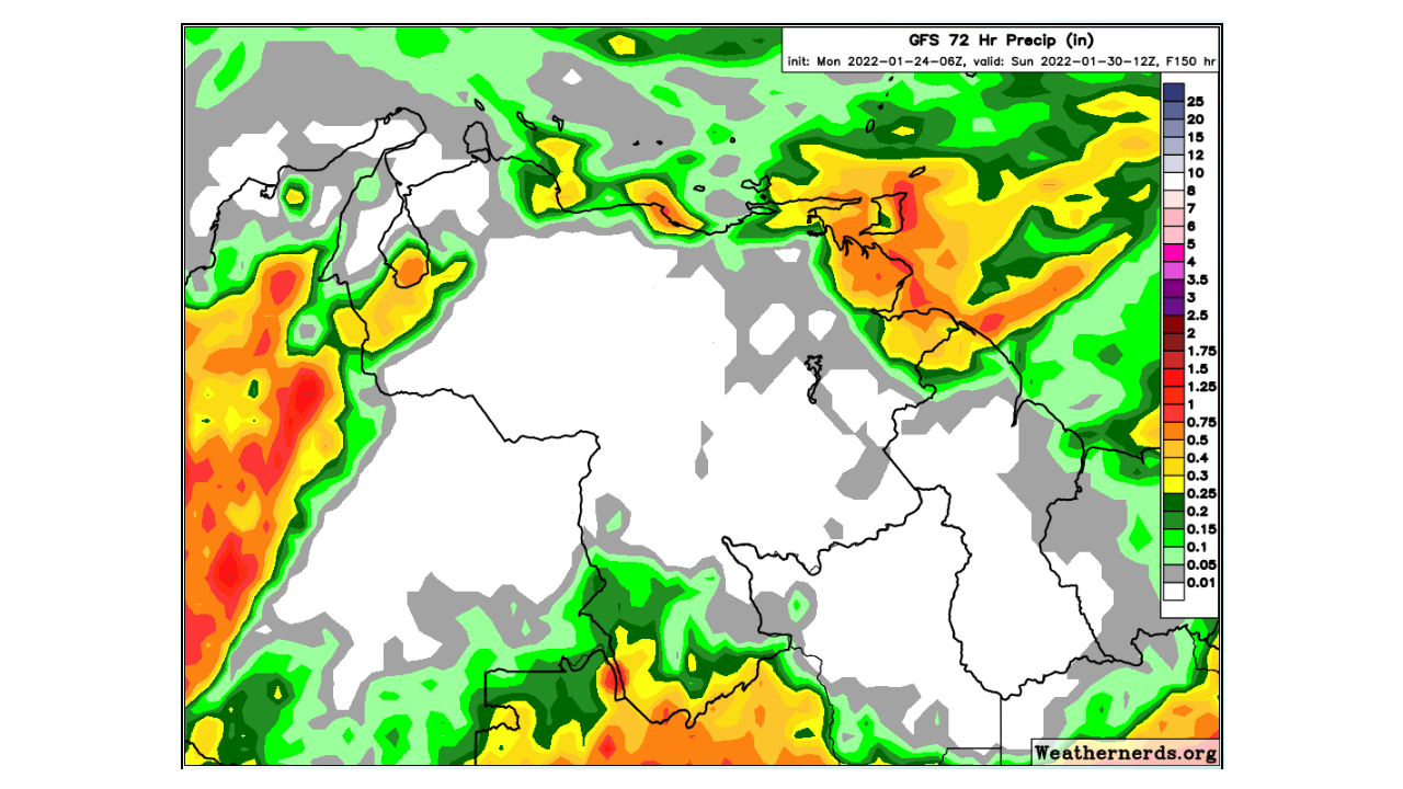 PRONOSTICO DE ANOMALÍAS SEMANALES DE PRECIPITACIÓN DEL 24/01 AL 20/02/22 Pronostico de Anomalías Semanales para Venezuela, del 24/01 al 22/02/22, usando datos del Modelo CFSv2…