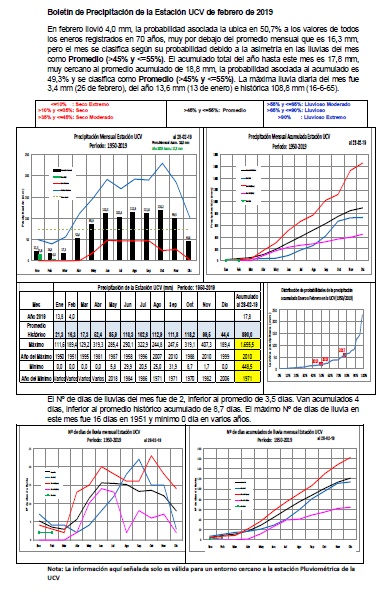 Boletín Lluvias Estación UCV mes de Febrero 2019 [pdf-embedder url="https://hidromet-ucv.org/wp-content/uploads/2019/02/Lluvia-UCV-al-28-02-19-1.pdf" title="Lluvia UCV al 28-02-19"]