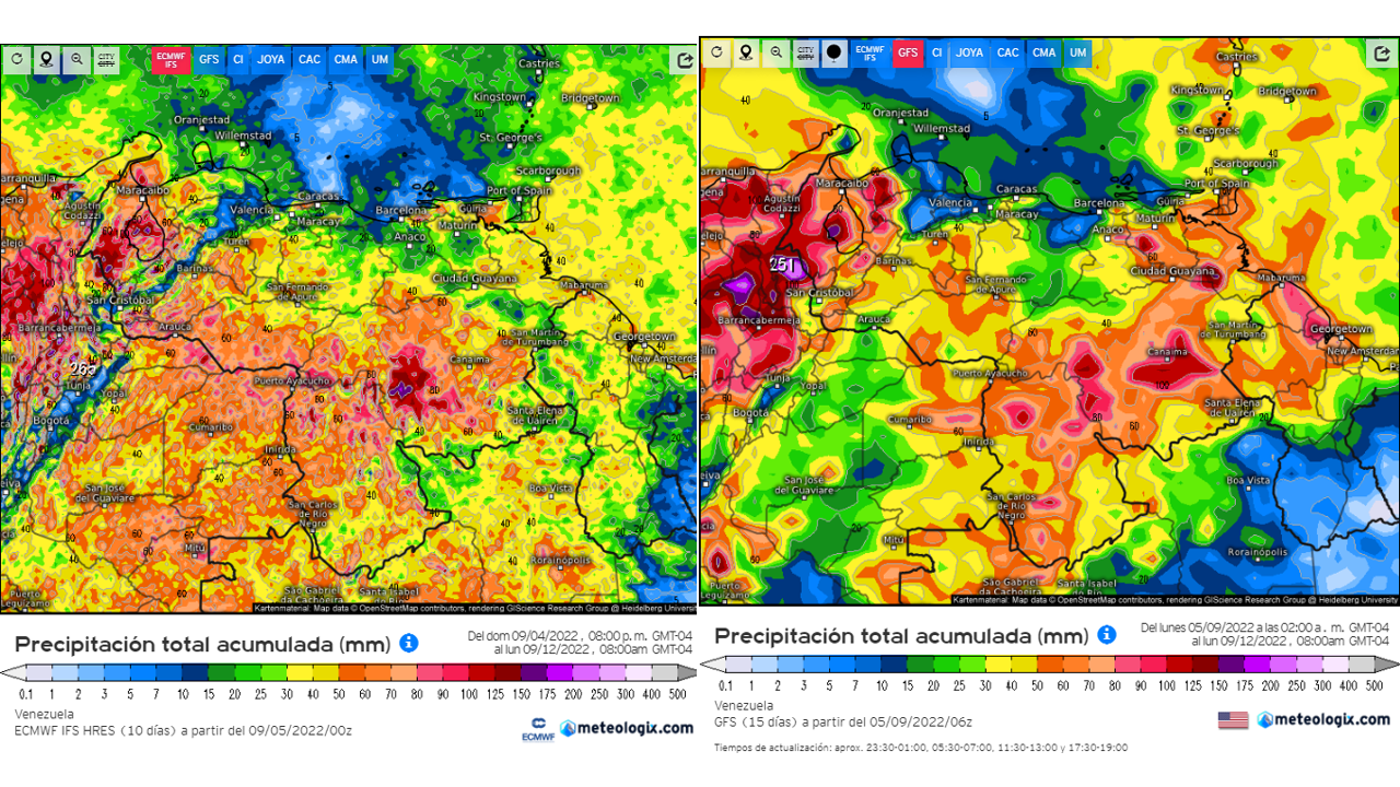 PRONOSTICO DE ANOMALÍAS SEMANALES DE PRECIPITACIÓN DEL 05/09 AL 02/10/22 Pronostico de Anomalías Semanales para Venezuela, del 05/09 al 02/10/22, usando datos del Modelo CFSv2…
