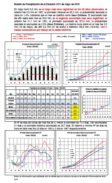 Comentarios al Boletín de Precipitación Estación UCV mes de Mayo Estimados Amigos Ante todo un gran saludo Quiero destacar 3 notas importantes referentes a la lluvia…